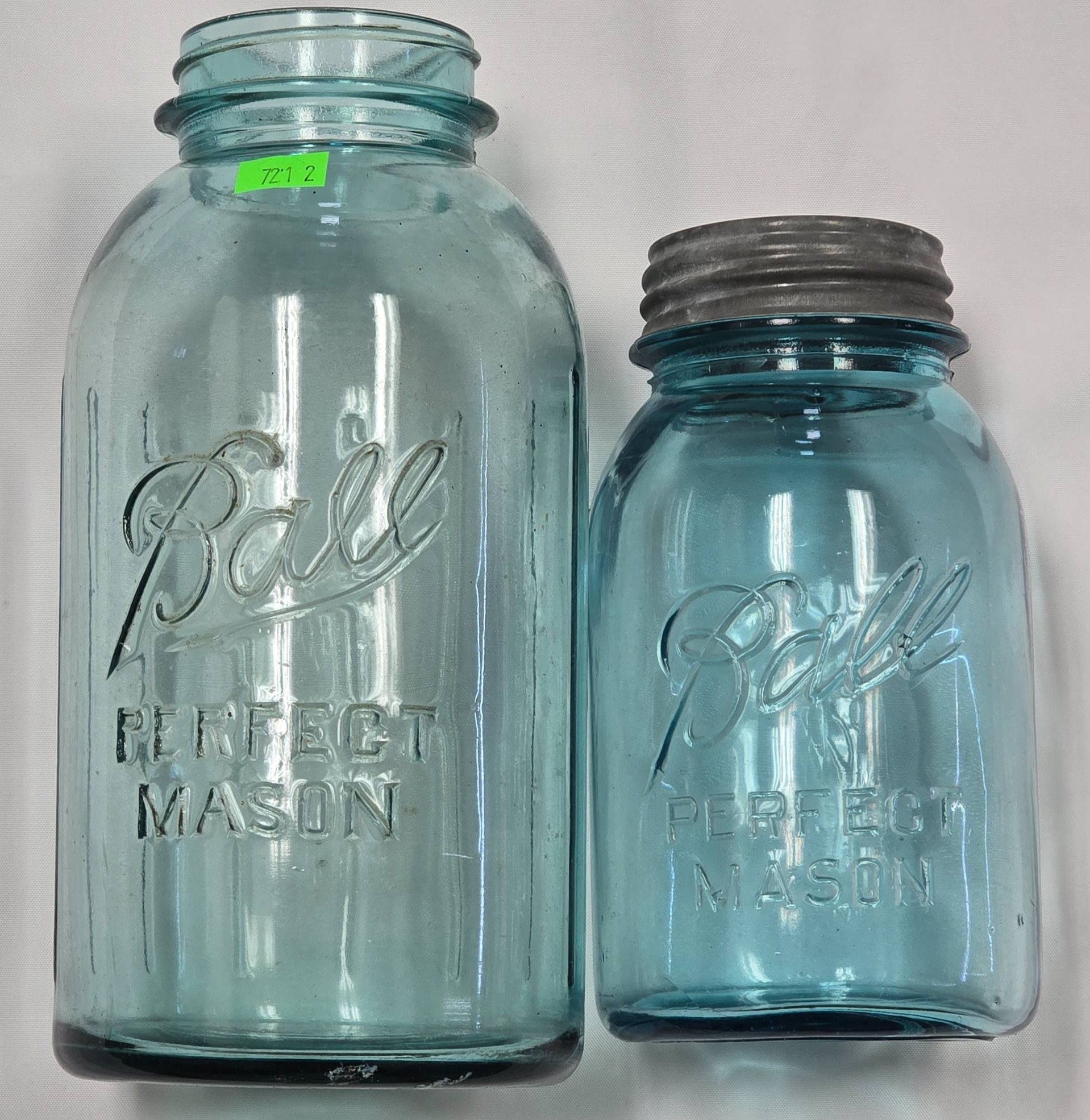 721 2 - Ball Blue Glass Jars Marked #13 & #1 Perfect Mason
