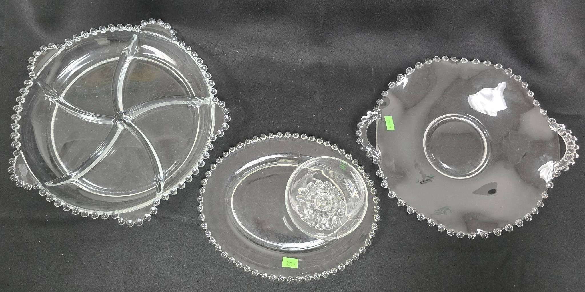 728 Clear Candlewick Divided Serving Dish, Chip & Dip Server, and Dual Handled Server