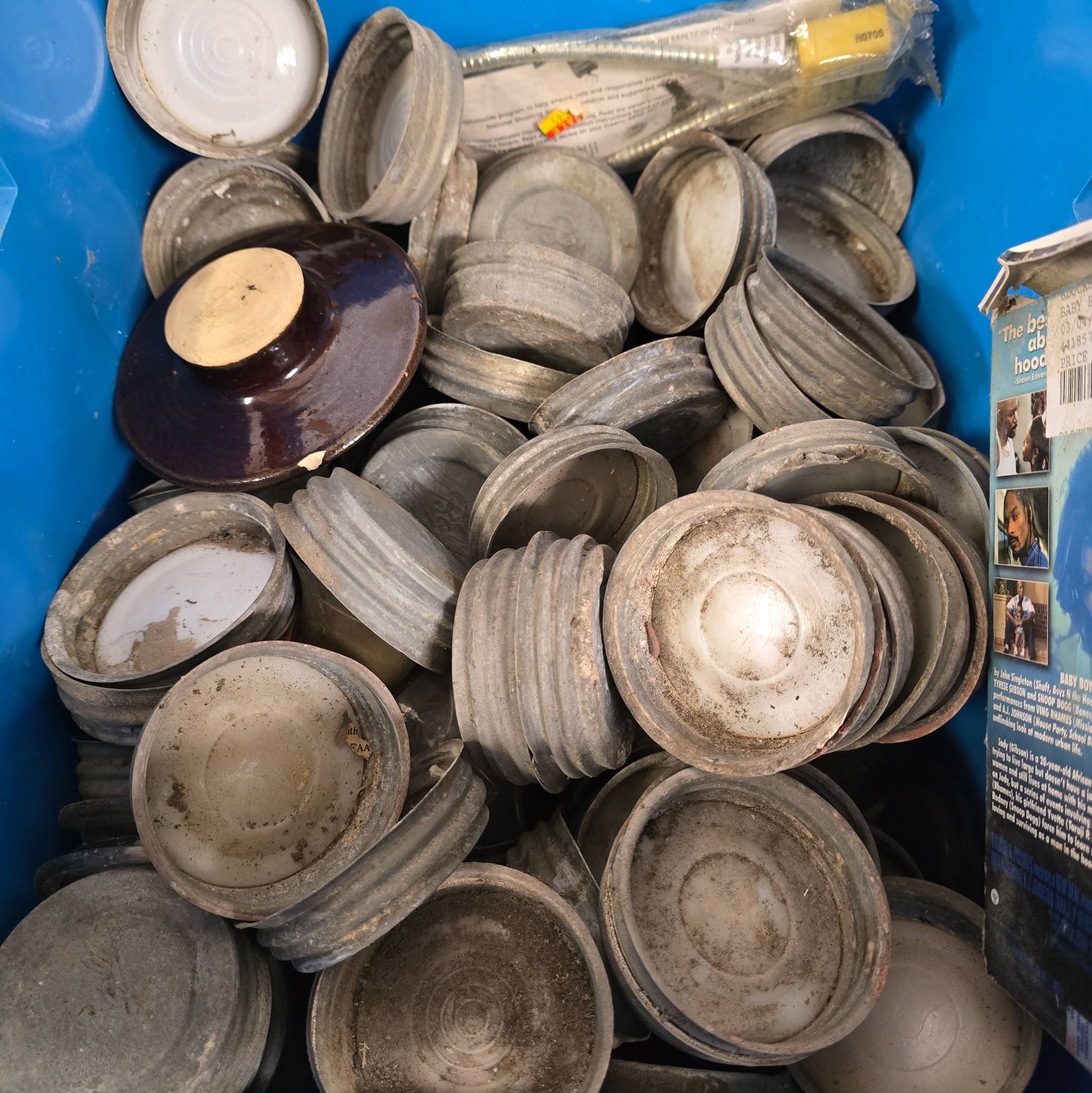 734 Ball Jar Lids inc. Zinc in Plastic Tote, Unknown Quantity
