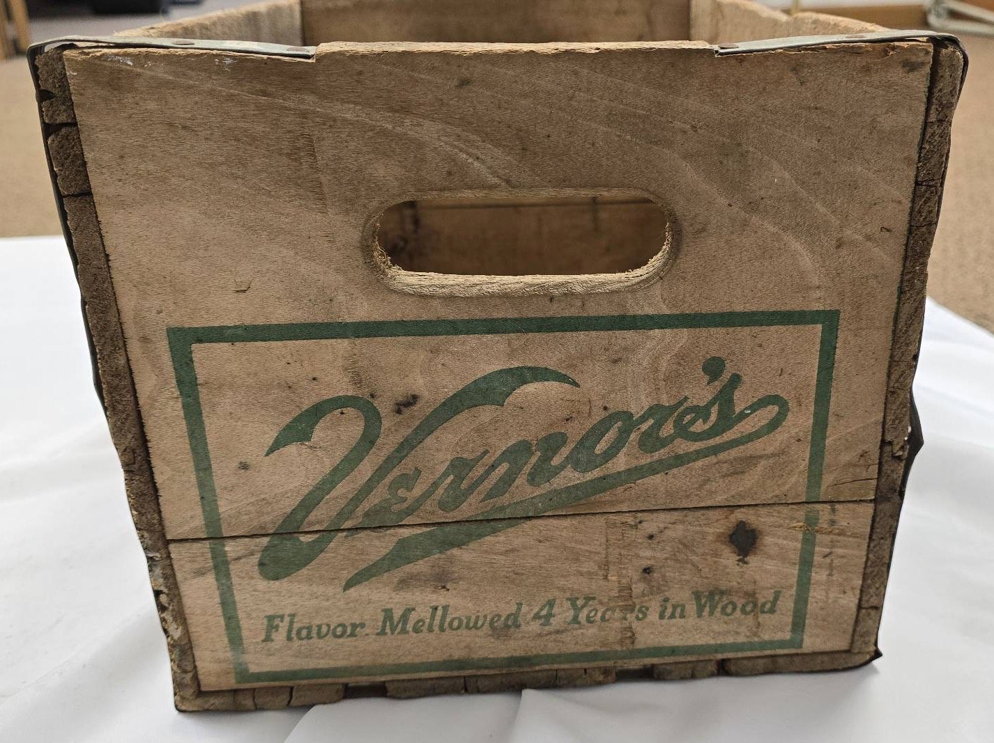 738 Vernor’s Ginger Ale Branded Wood Crate with Built-In Handles 11"x16"x9.5"