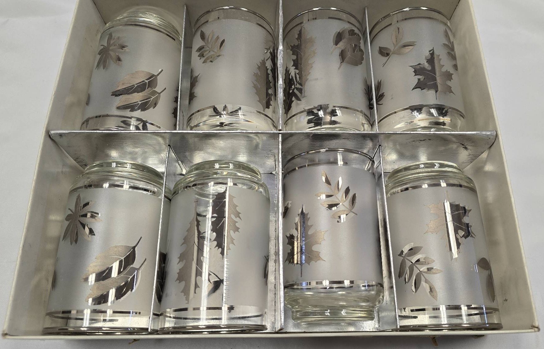 740 8 Libby Clear Glasses with Frosted and Silver Leaf Design