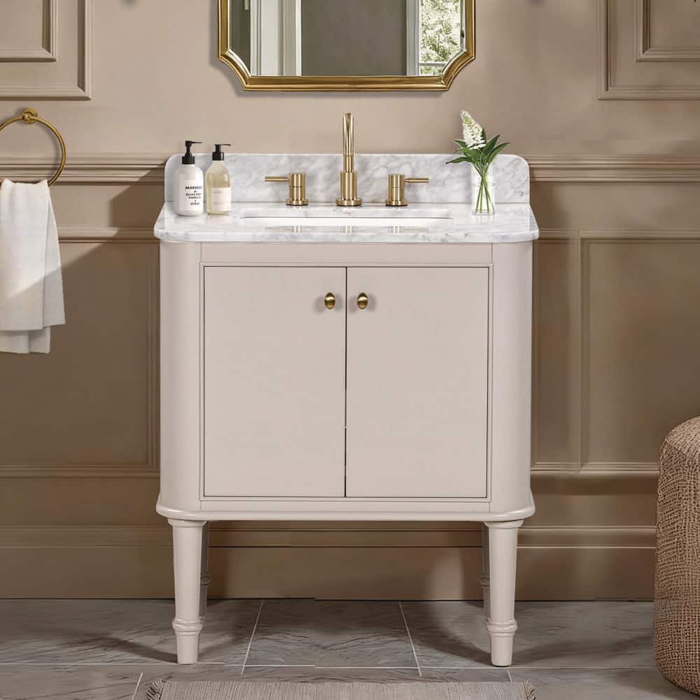 831003 "HOME DECORATORS COLLECTION - Collette 30 in. Single Sink Greige Bath Vanity with White Carrara Marble Top (Assembled)