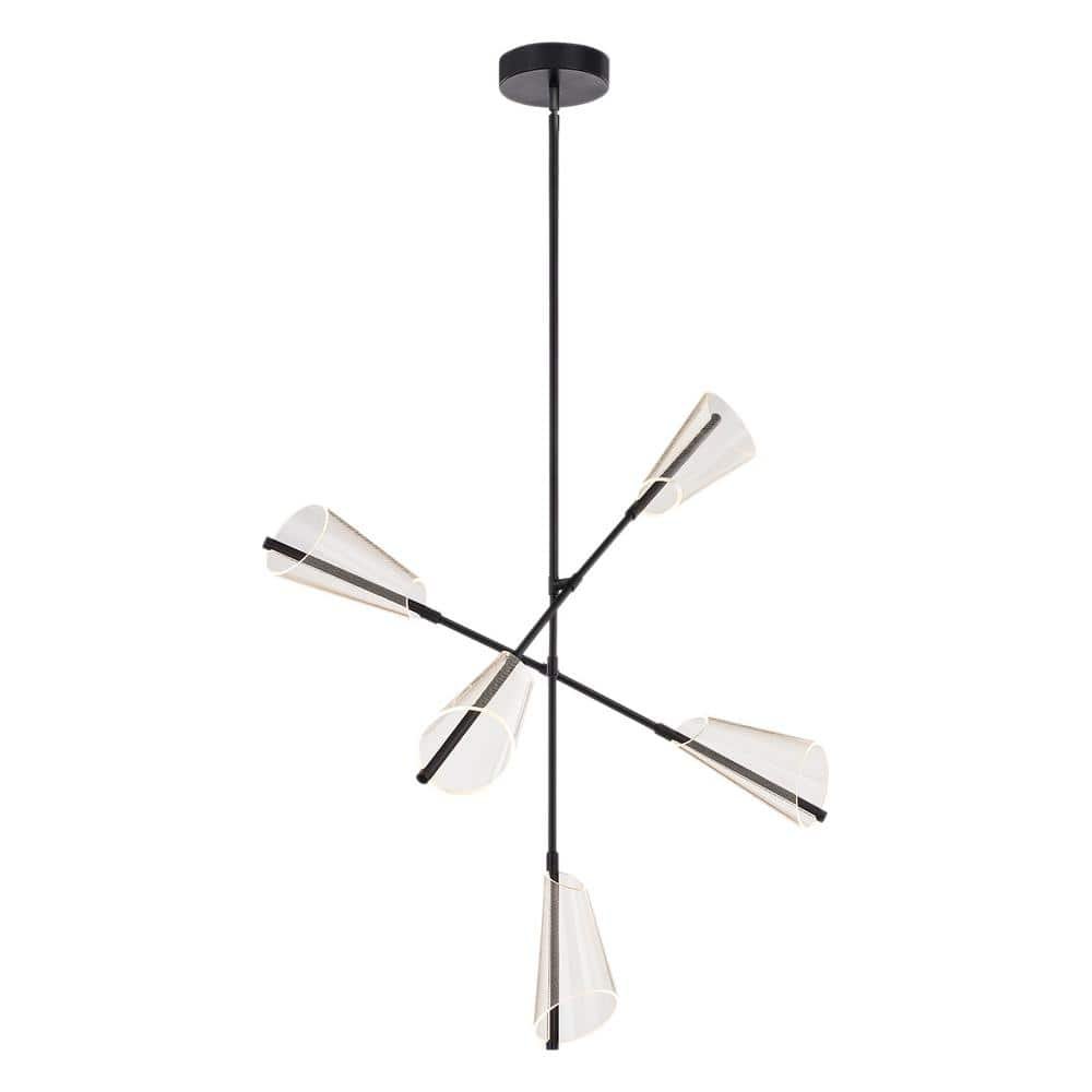 831005 KUZCO - Mulberry 37 in. 5-Light 67-Watt Black/Light Guide Integrated LED Chandelier