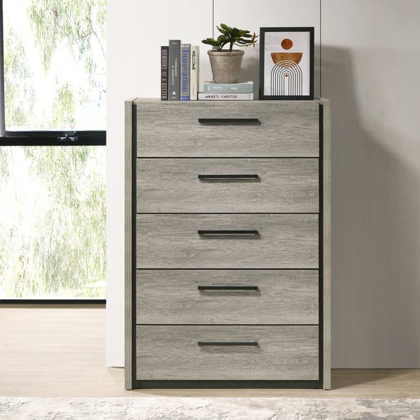 831014 "ROUNDHILL FURNITURE - Roundhill Furniture Lenca 5-Drawer Chest - Weathered Gray