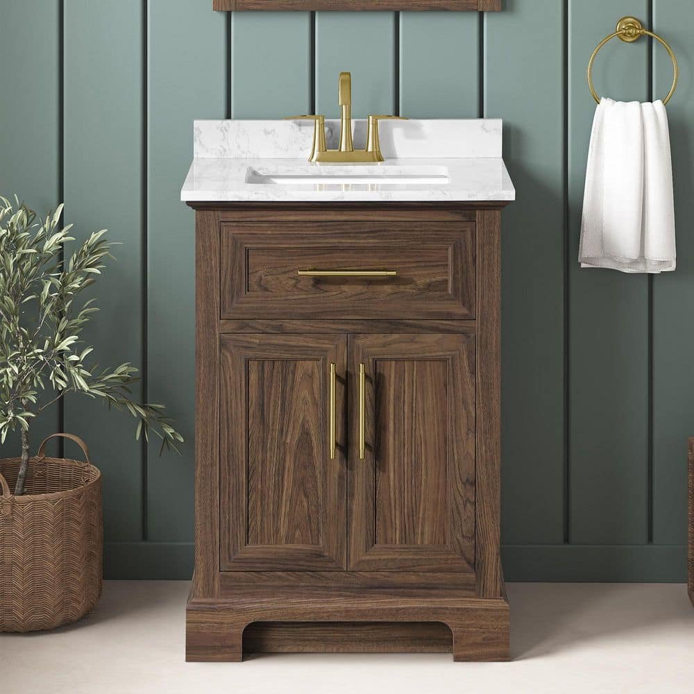 831023 HOME DECORATORS COLLECTION - Doveton 24 in. Single Sink Dark Walnut Bath Vanity with White Engineered Marble Top (Assembled)