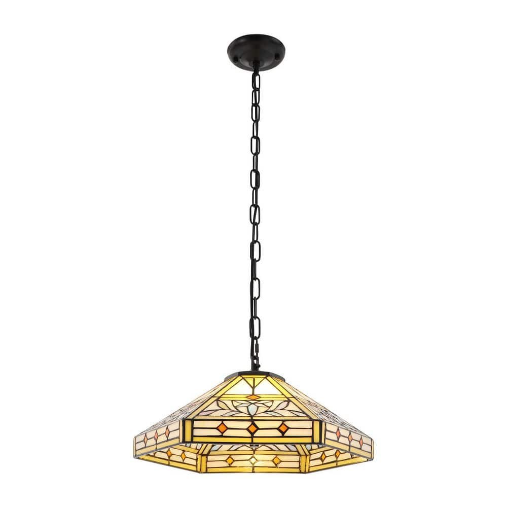 831074 OUKANING - 2-Light Multicolored Tiffany Style Shaded Pendant Light with Adjustable Height and Glass Shade, No Bulbs Included