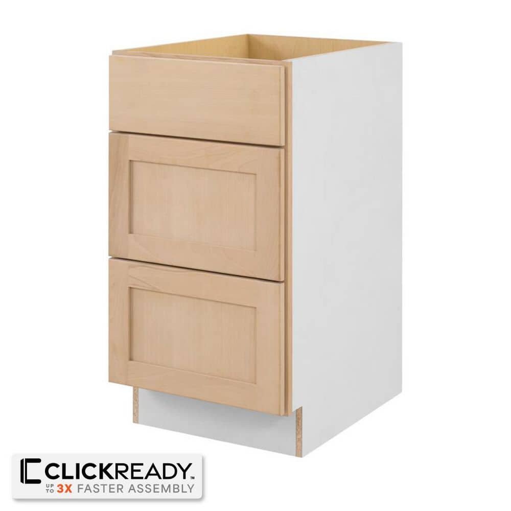 831080 HAMPTON BAY - 18 in. W x 24 in. D x 34.5 in. H Ready to Assemble Drawer Base Kitchen Cabinet in Unfinished with CLICKREADY Technology