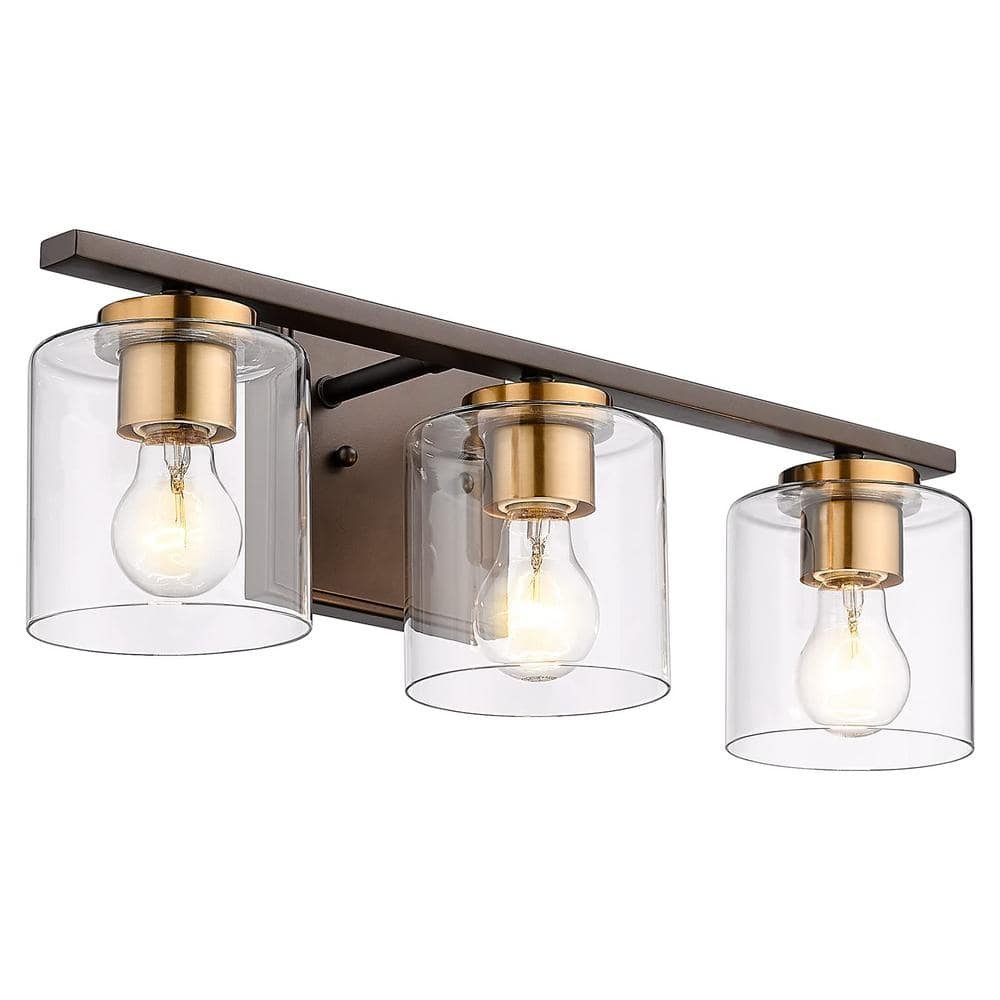 831031 KICHLER - Benno 34 in. 4-Light Black and Champagne Bronze Industrial Bathroom Vanity Light with Opal Glass