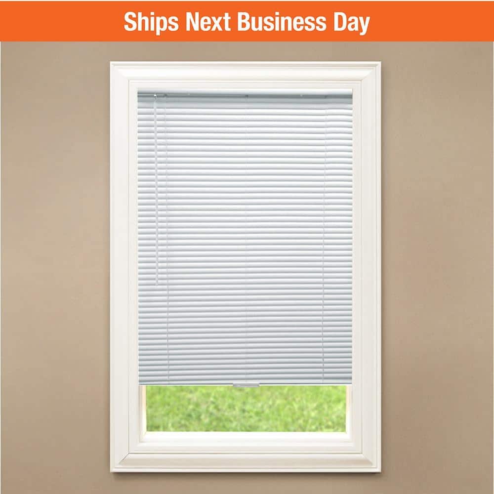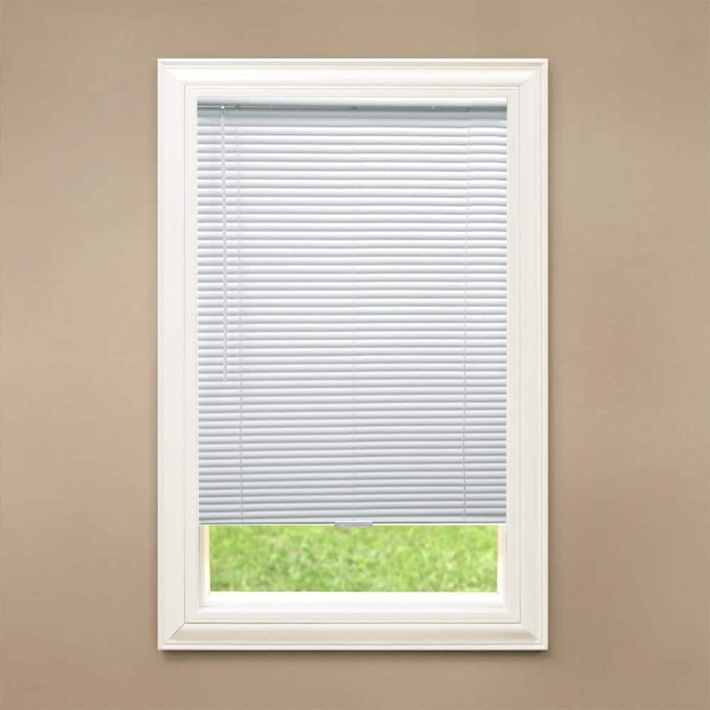 832563 - Pre-Cut 52 in. W x 64 in. L Cordless Light Filtering White Vinyl Mini Blind with 1 in. Slats