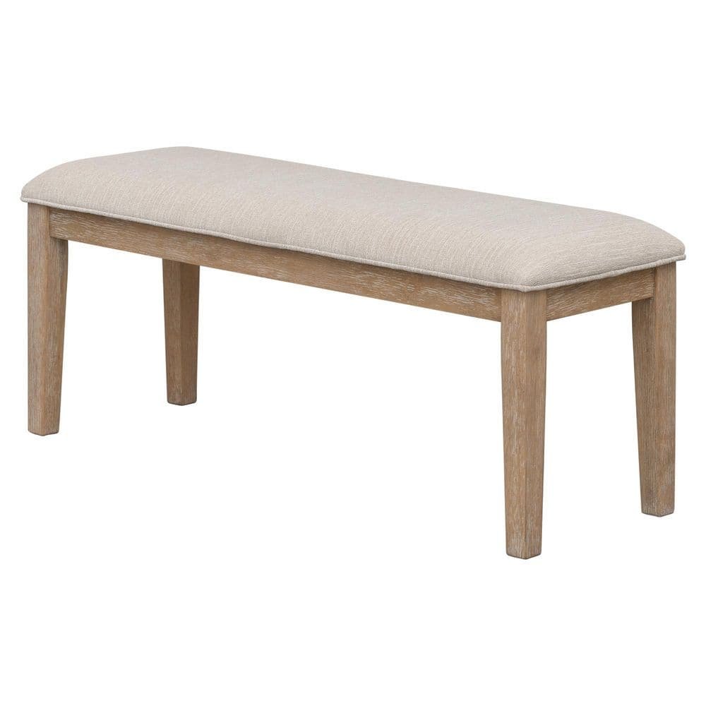 841003 QUALLER - Natural Wood Wash Brown Upholstered Bench