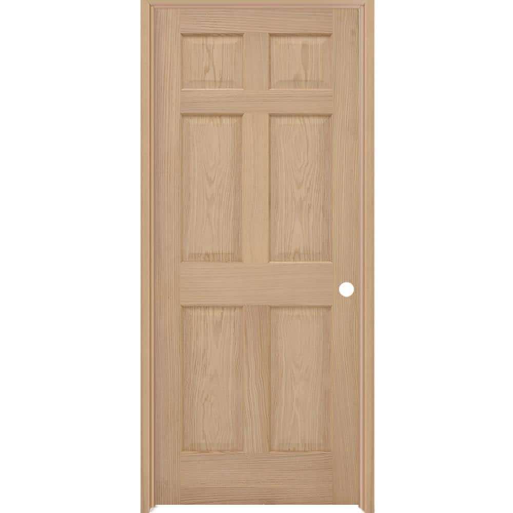 841005 STEVES & SONS - 36 in. x 80 in. 6-Panel Left-Hand Unfinished Red Oak Wood Prehung Interior Door with Nickel Hinges