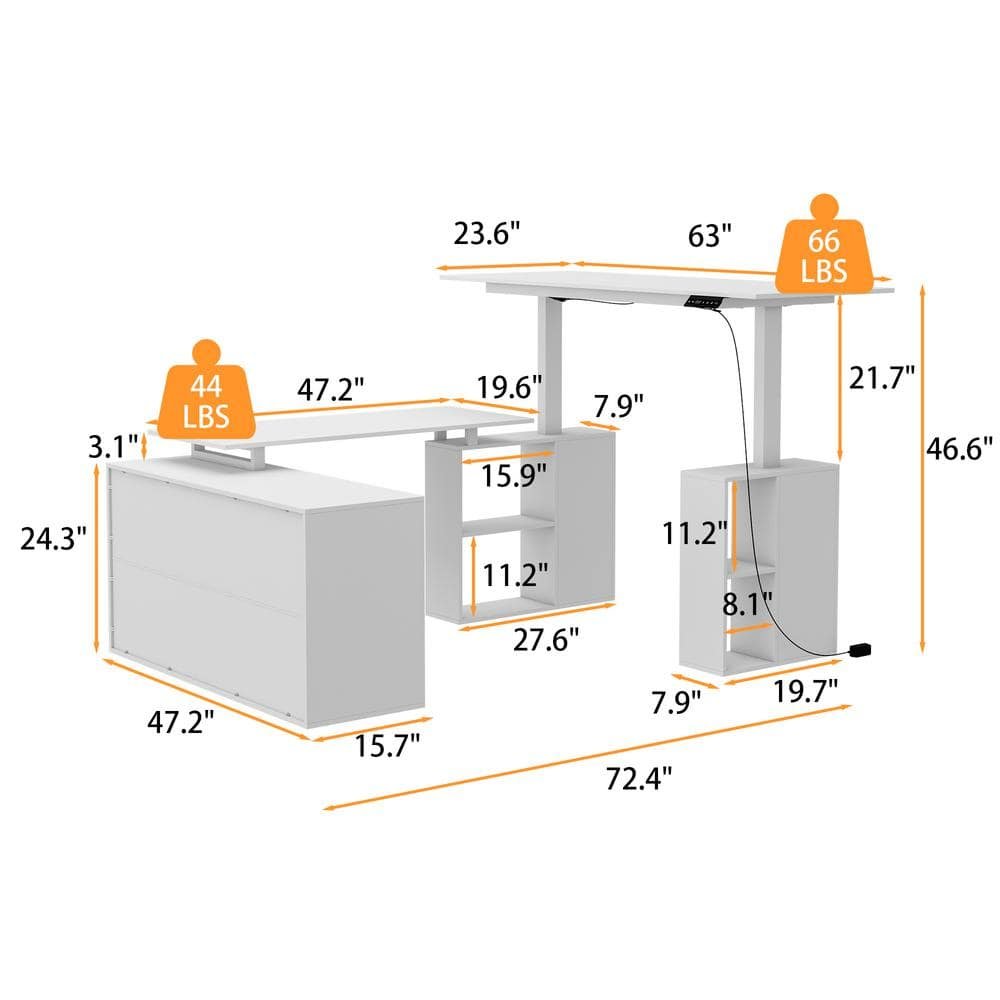 841020 FUFU&GAGA - 72.4 in. W U-Shaped White Wood Computer Desk Adjustable Height Desk Office Home Workstation with Cabinet, Bookshelf
