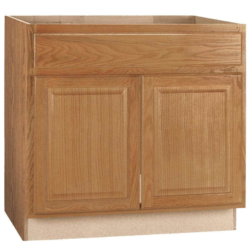 841045 HAMPTON BAY - Hampton 36 in. W x 24 in. D x 34.5 in. H Assembled Sink Base Kitchen Cabinet in Medium Oak