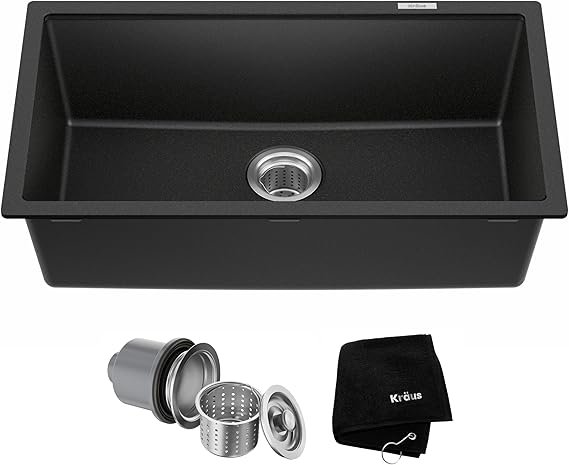 841057 KRAUS - Quarza 31-inch Undermount Single Bowl Granite Kitchen Sink in Black OnyX