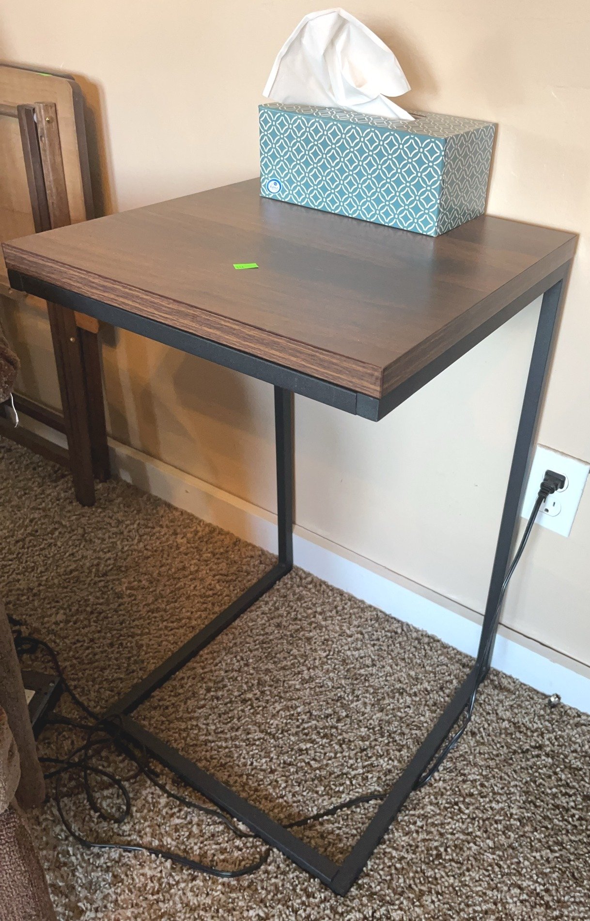116 C-shaped Wood Top and Metal Legs Side Table and Wood TV Tray