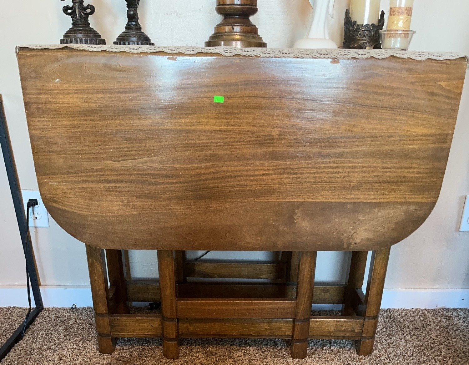 137 Wood Gate Leg, Drop Leaf Table, 33x51 , Contents NOT Included