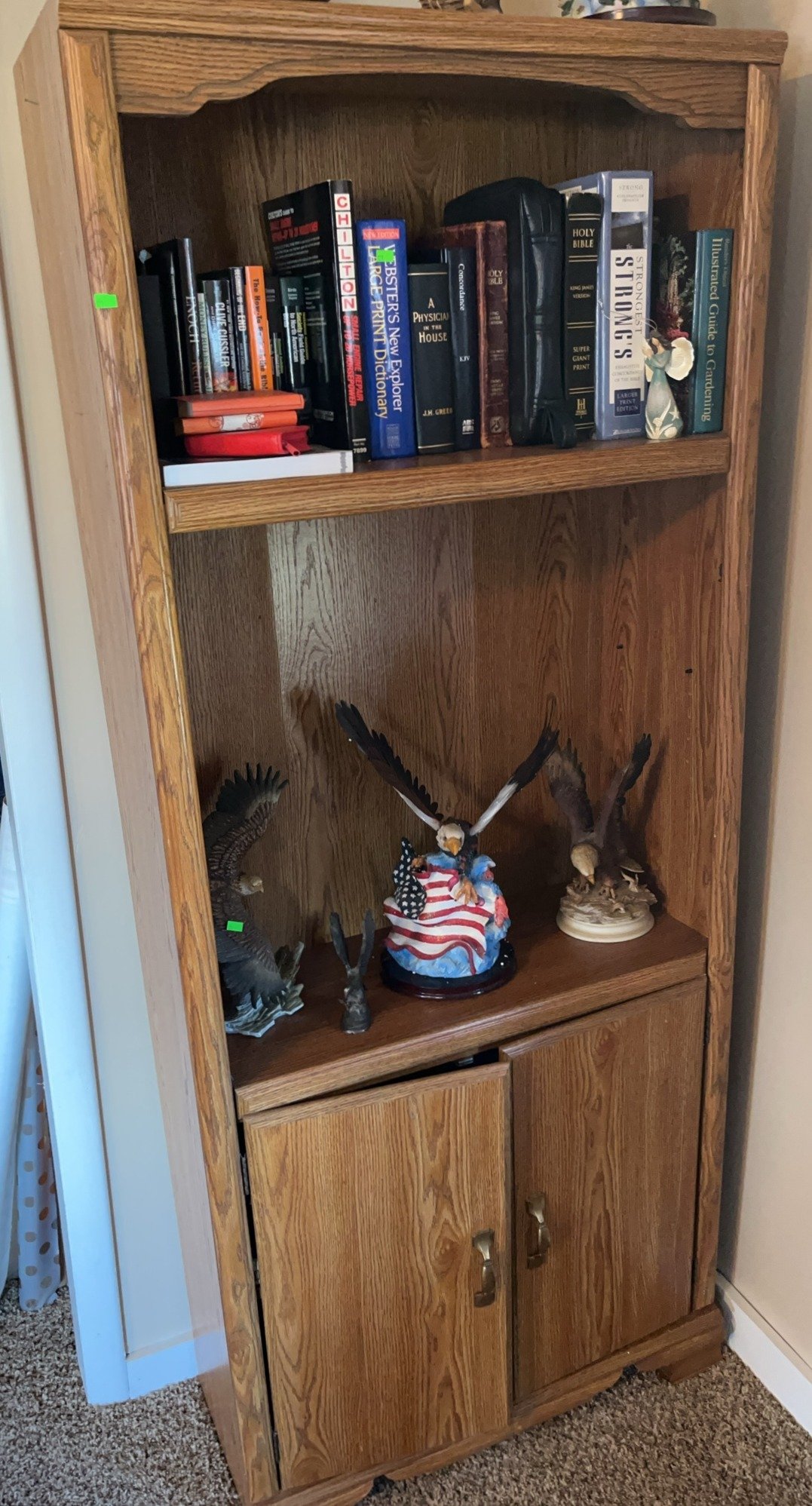 121 Wood Bookshelf with Storage Cabinet and Books, Figurines NOT Included
