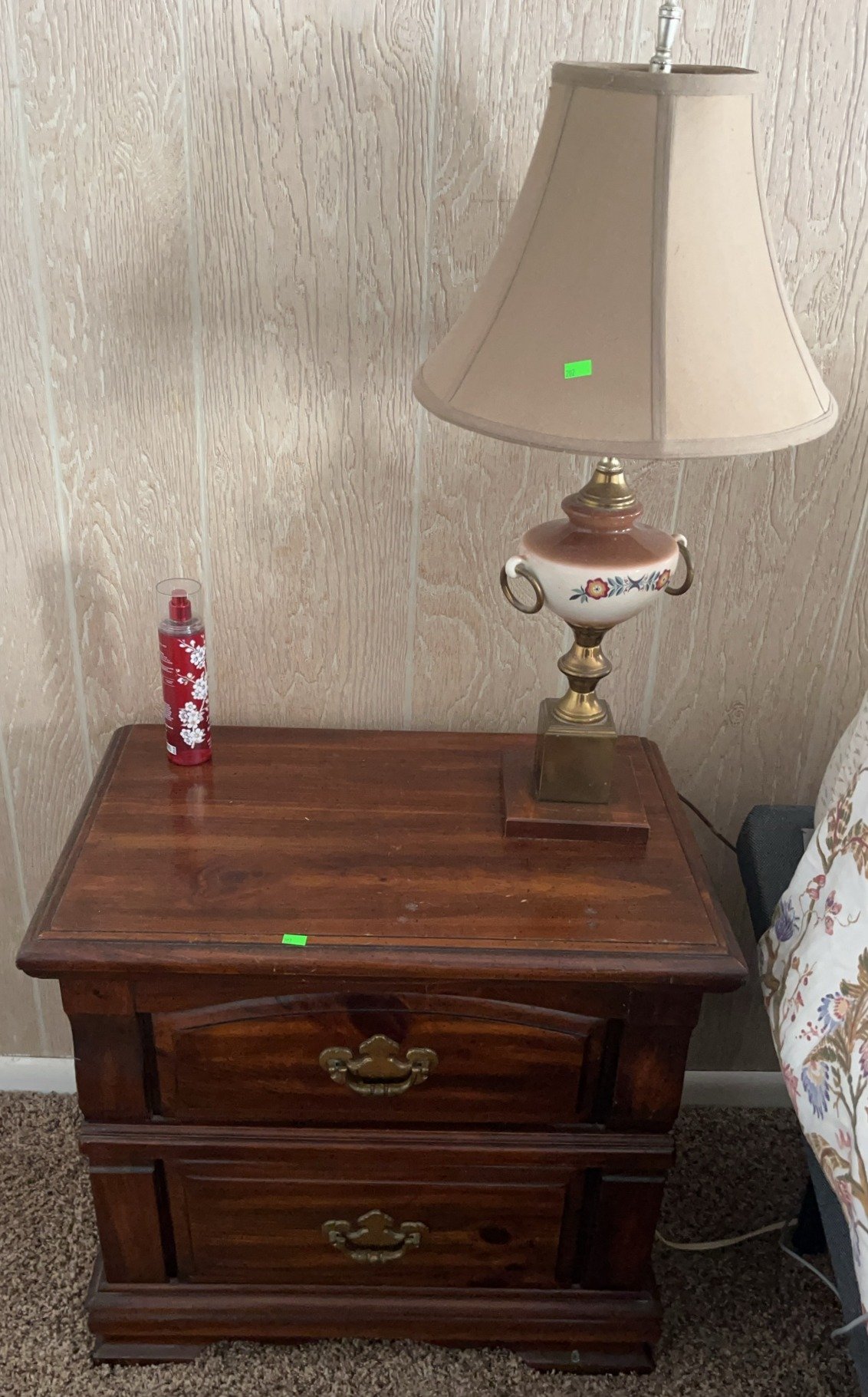 202 Wood 2 Drawer Nightstand and Porcelain Table Lamp with Brass-Colored Accents 25x16x24