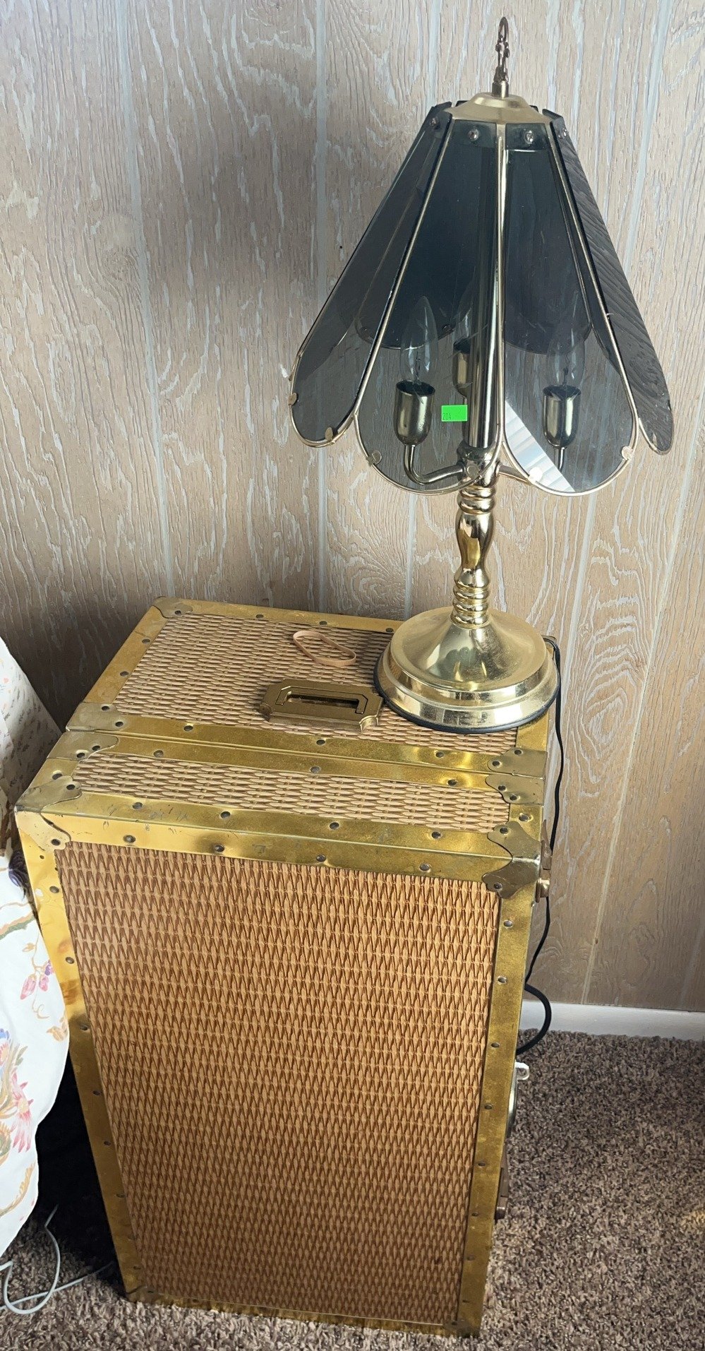 204 Brass 3 Light Table Lamp, Storage Trunk