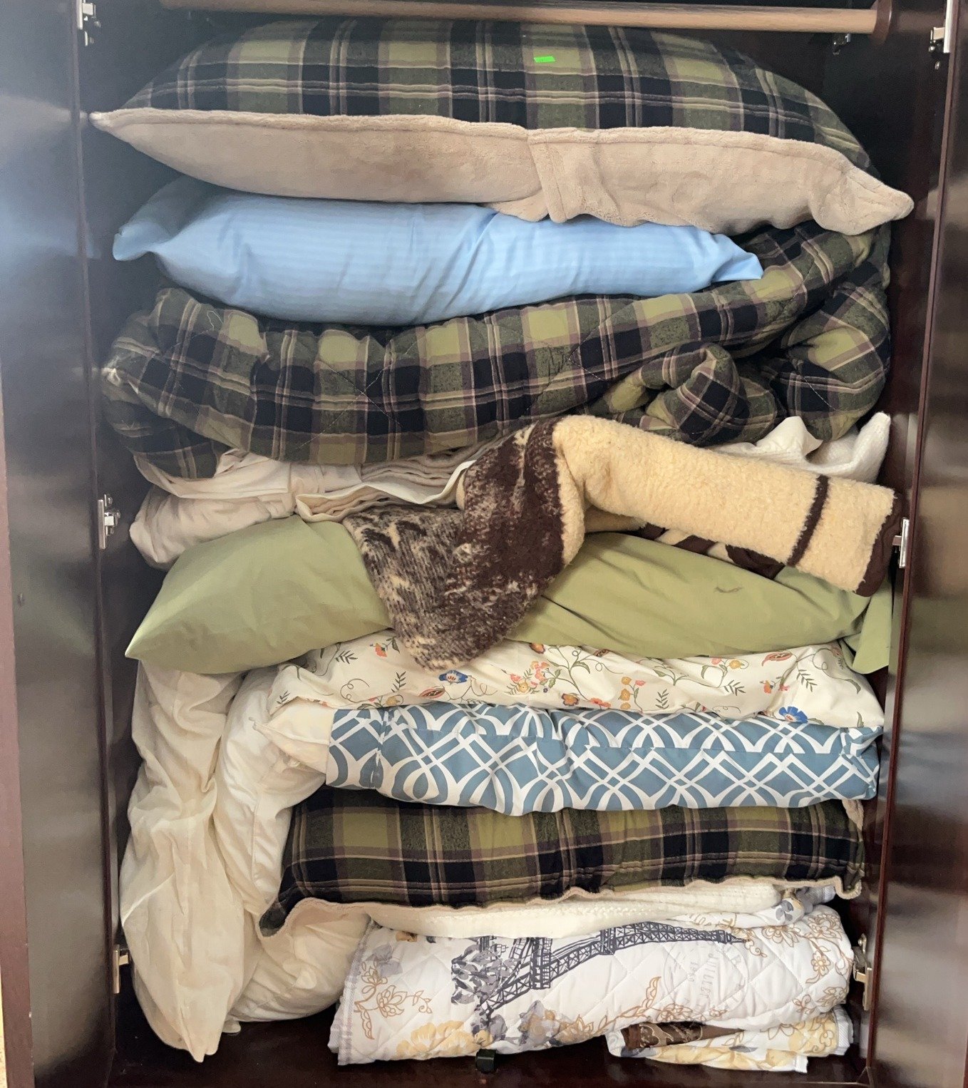 207 Bedding, Including Pillows, Blankets, Comforters, and a Quilt