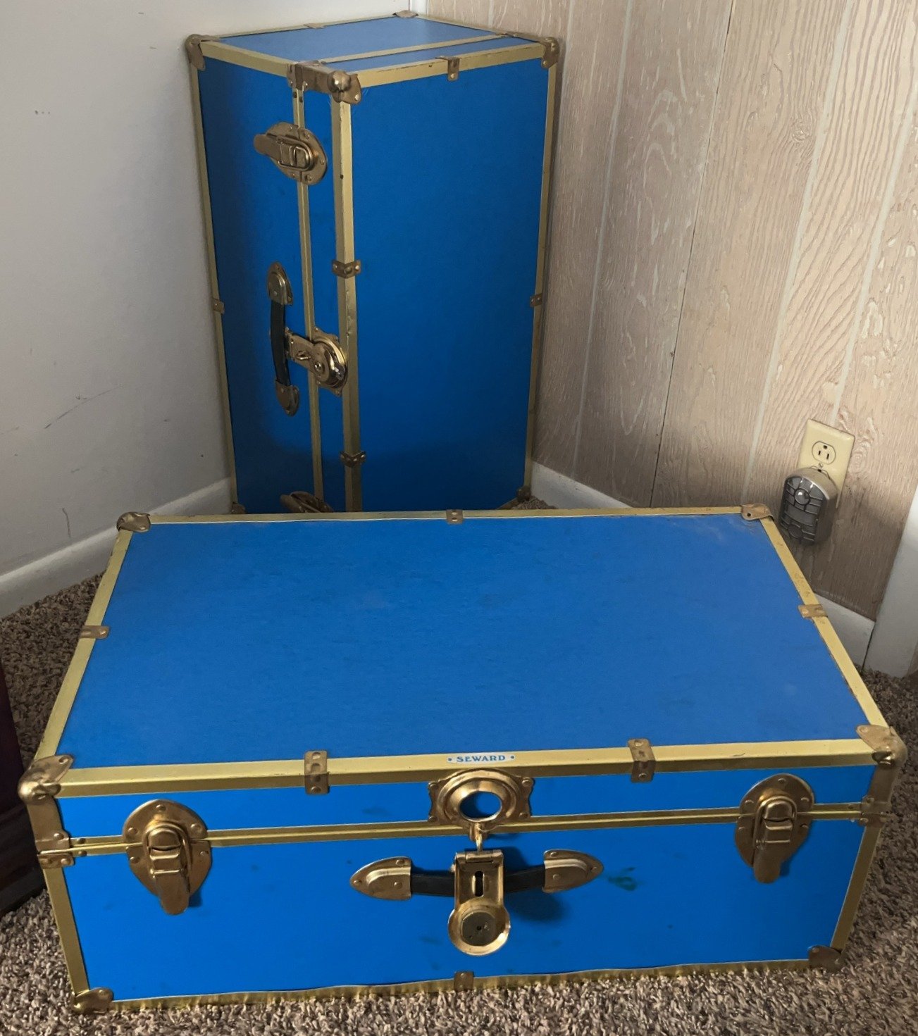 210 2 - Blue Wood Storage Trunks 30x12x16