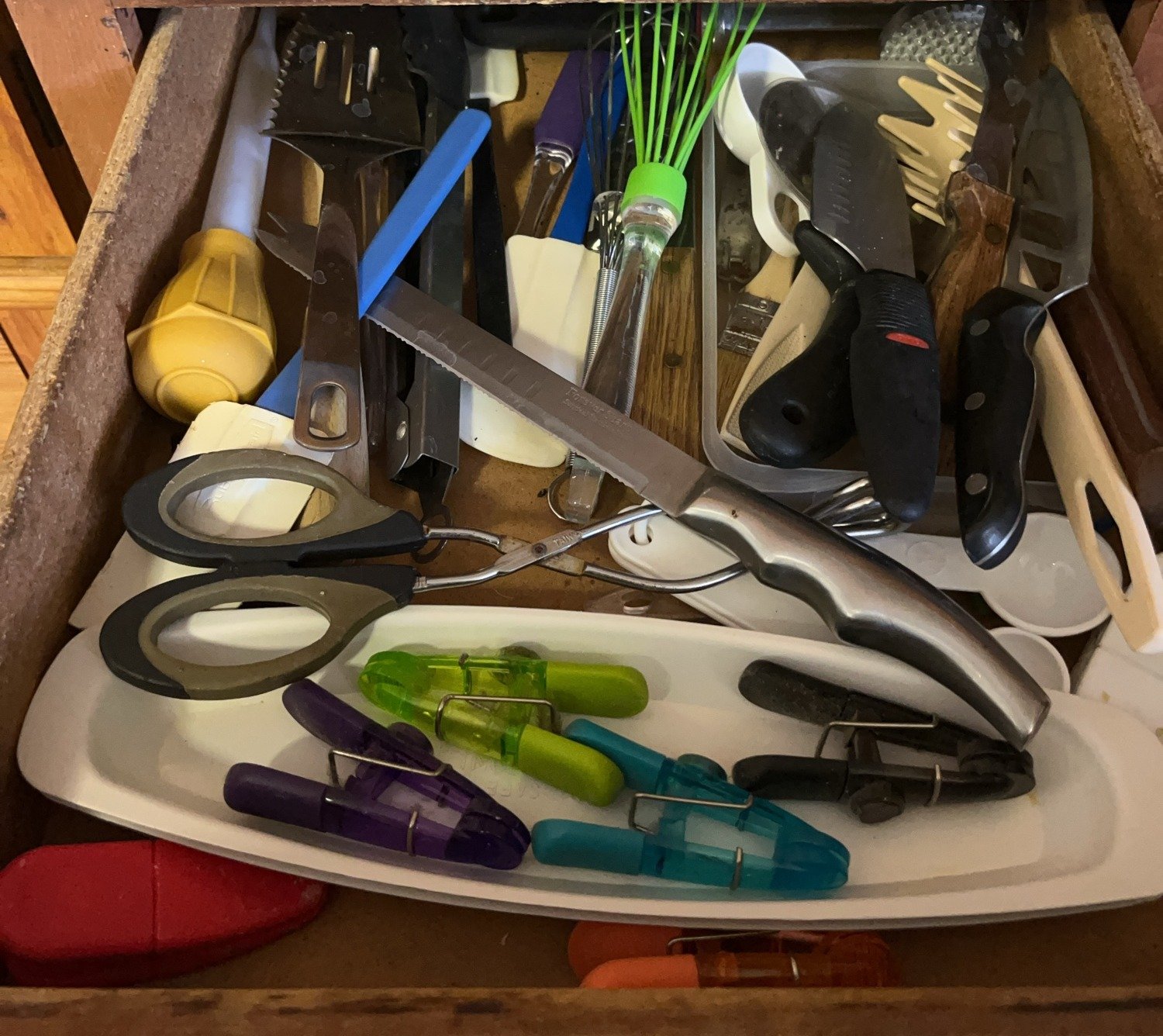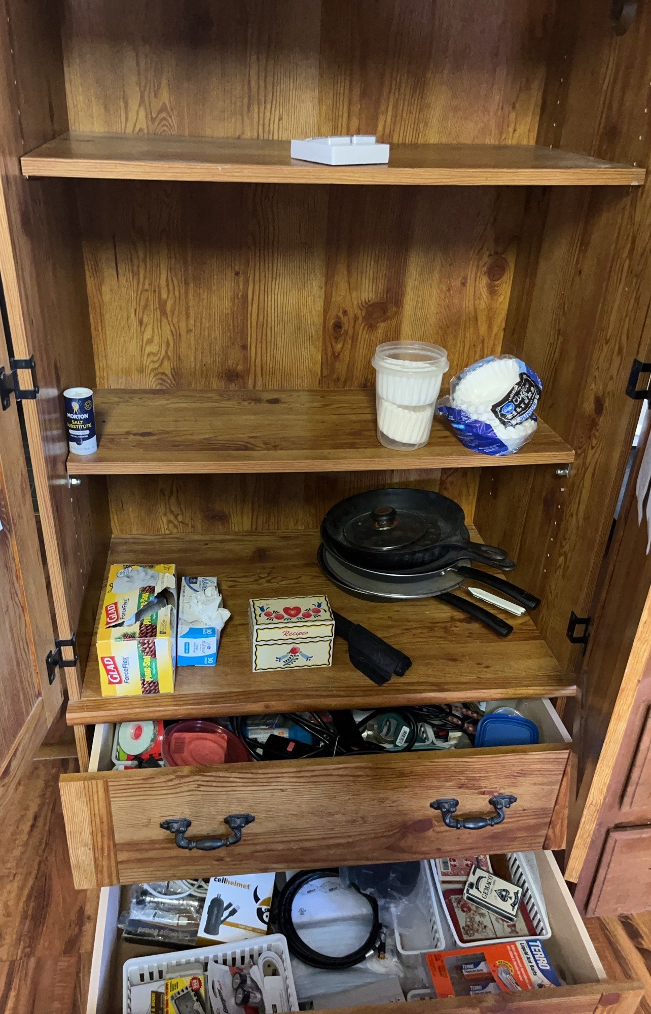 303 Cooking Pans, Metal Recipe Box, Dumbbell, 6-way Outlet, Playing Cards and String, Cabinet NOT Included