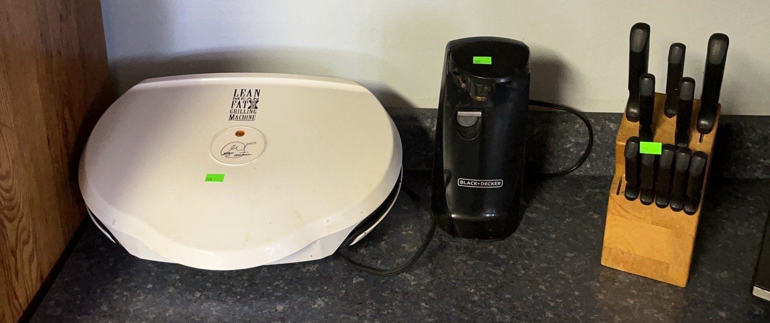 304 George Foreman Grill, Black & Decker Can Opener, 10 Knives with Wood Holder