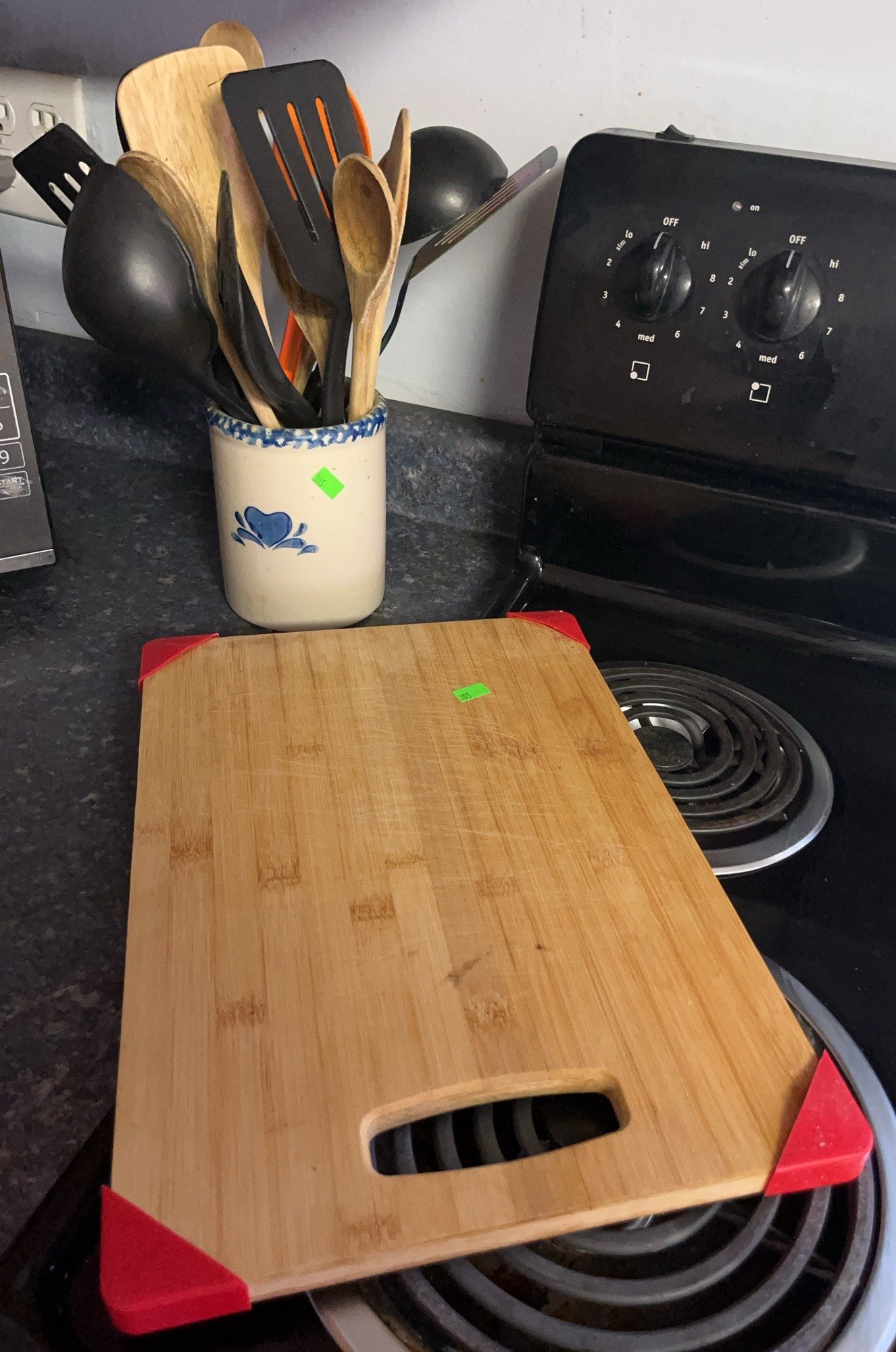 305 Wood Cutting Board, Wood and Plastic Kitchen Utensils and Crock