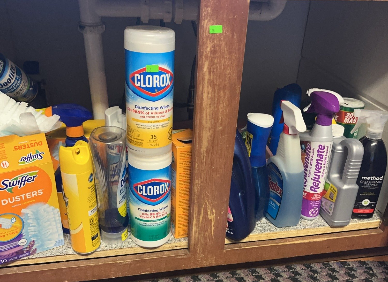 318 Cleaning Supplies Including Clorox Wipes, Swiffer Dusters and CLR, Partials and Full