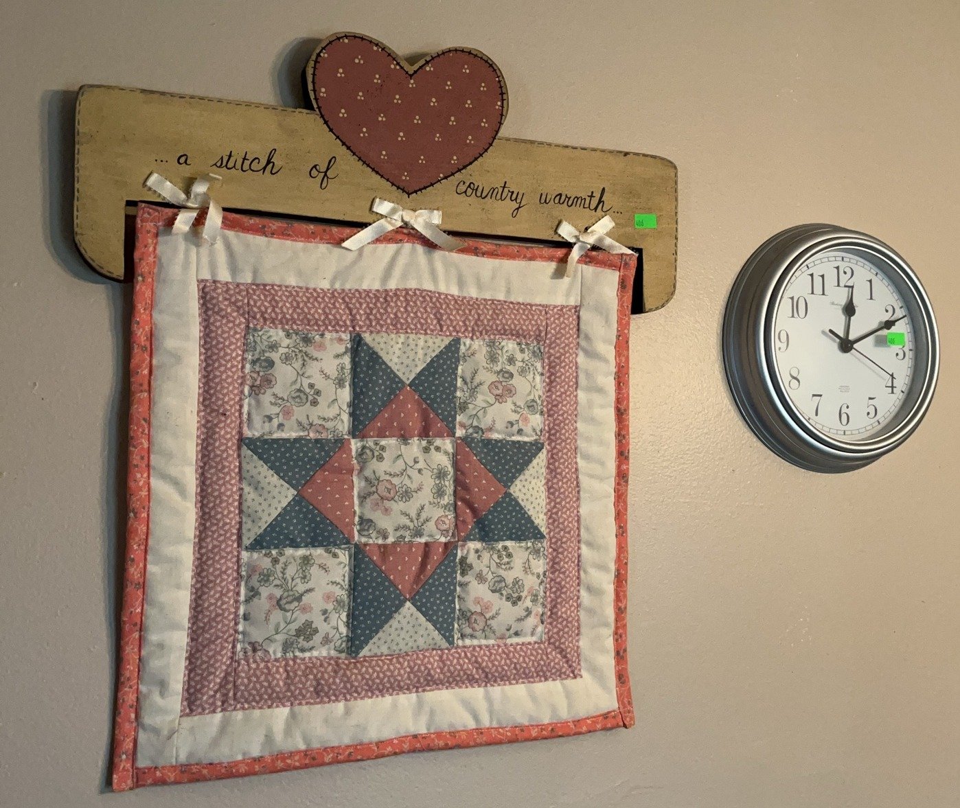 406 Wall Decor Inc. Wall Clock, Hanging Quilt With Wood Display and Grapevine Wreath