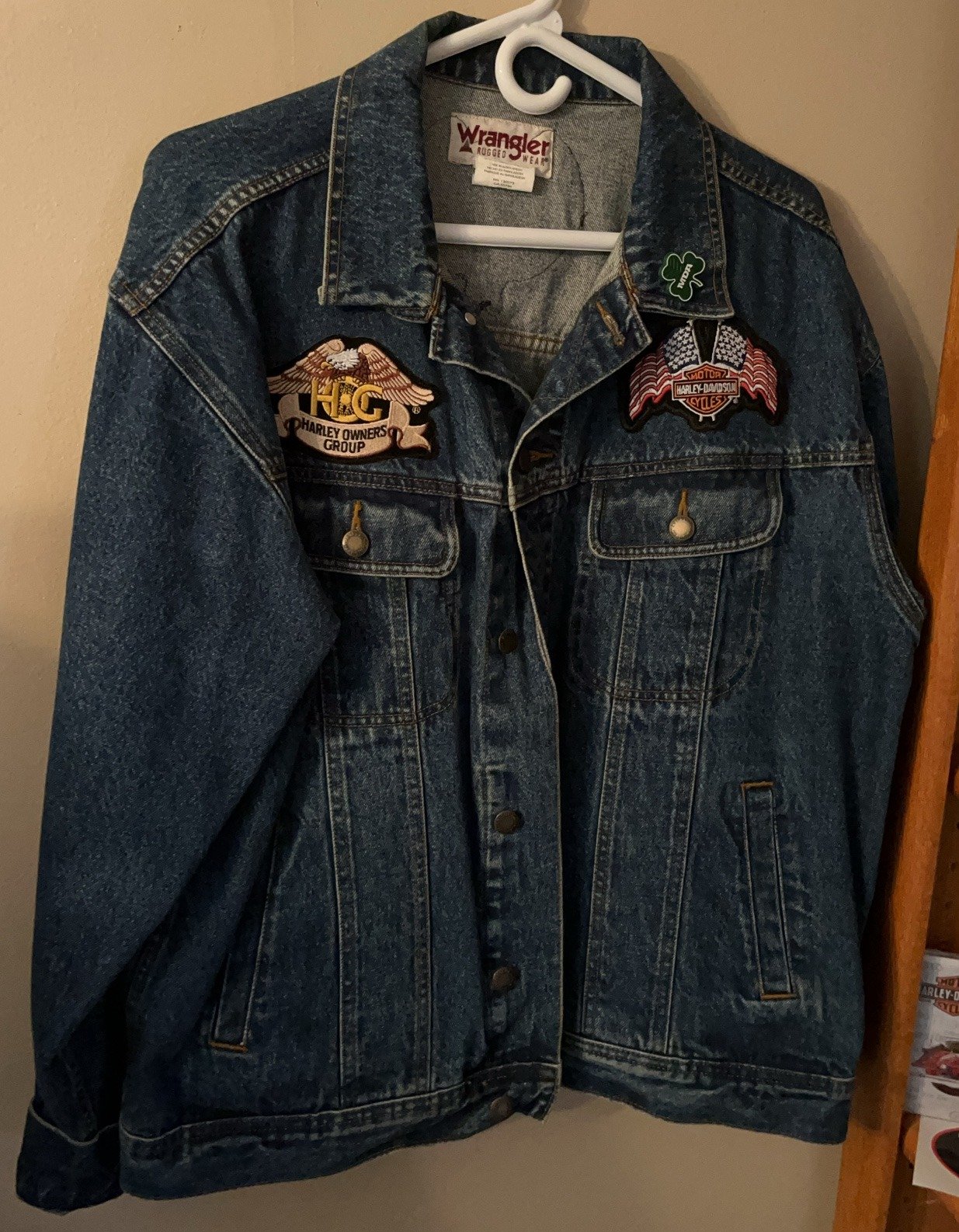 408 Wrangler Ladies Jean Jacket with Harley Davidson Logos, XL