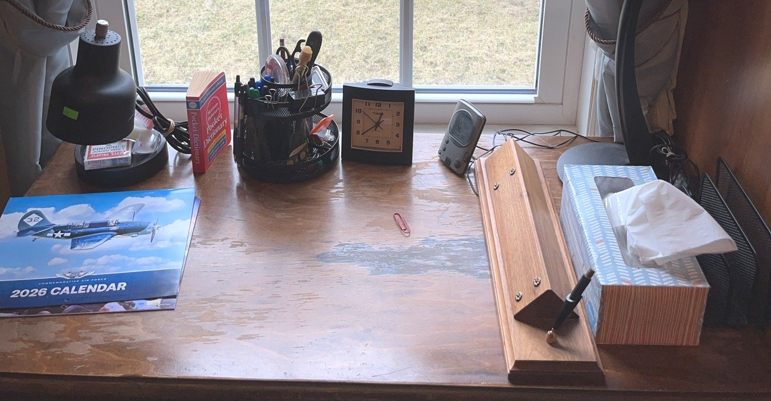 421 Desk Lamp, Clock, Metal Stationary Organizer and Office Supplies
