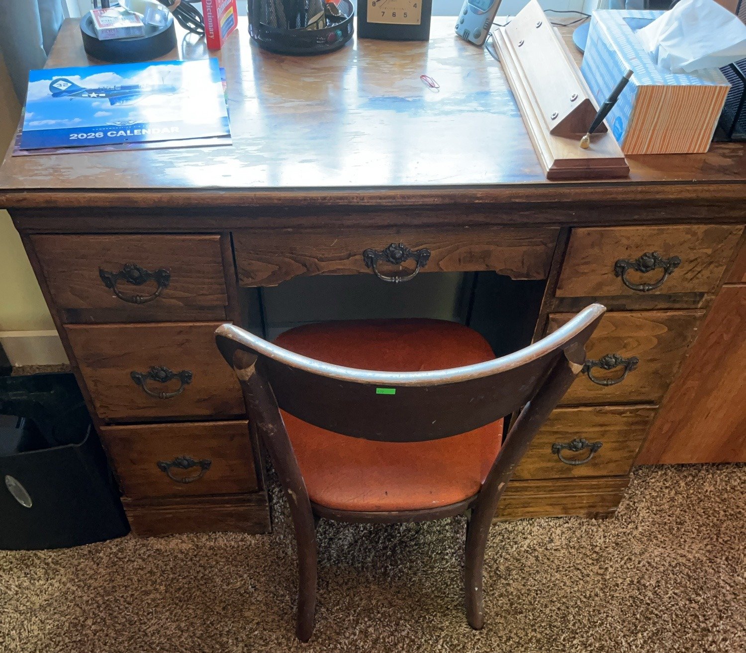 422 Wood Desk with Wood Chair, Contents NOT Included, 39.5x20x30 tall