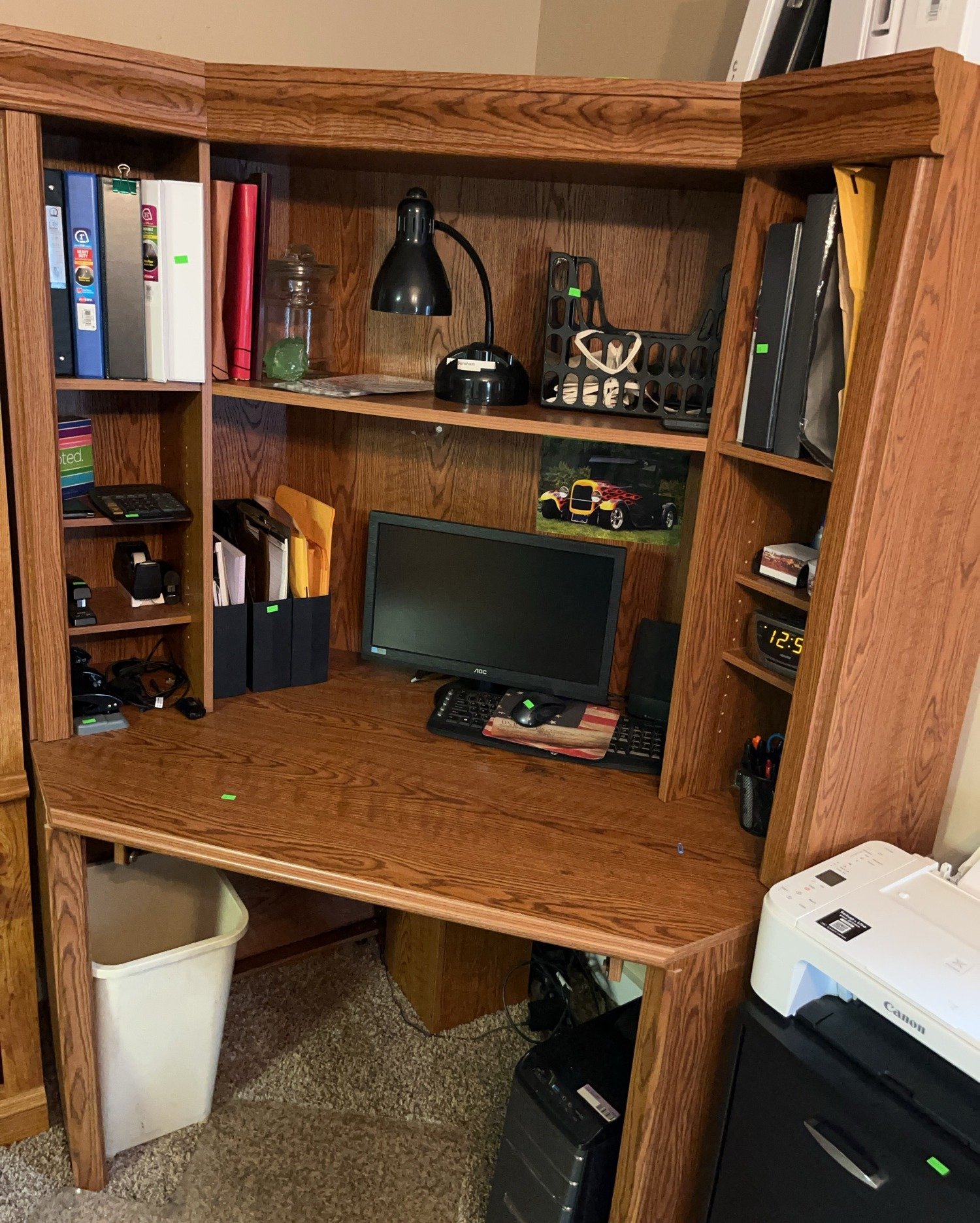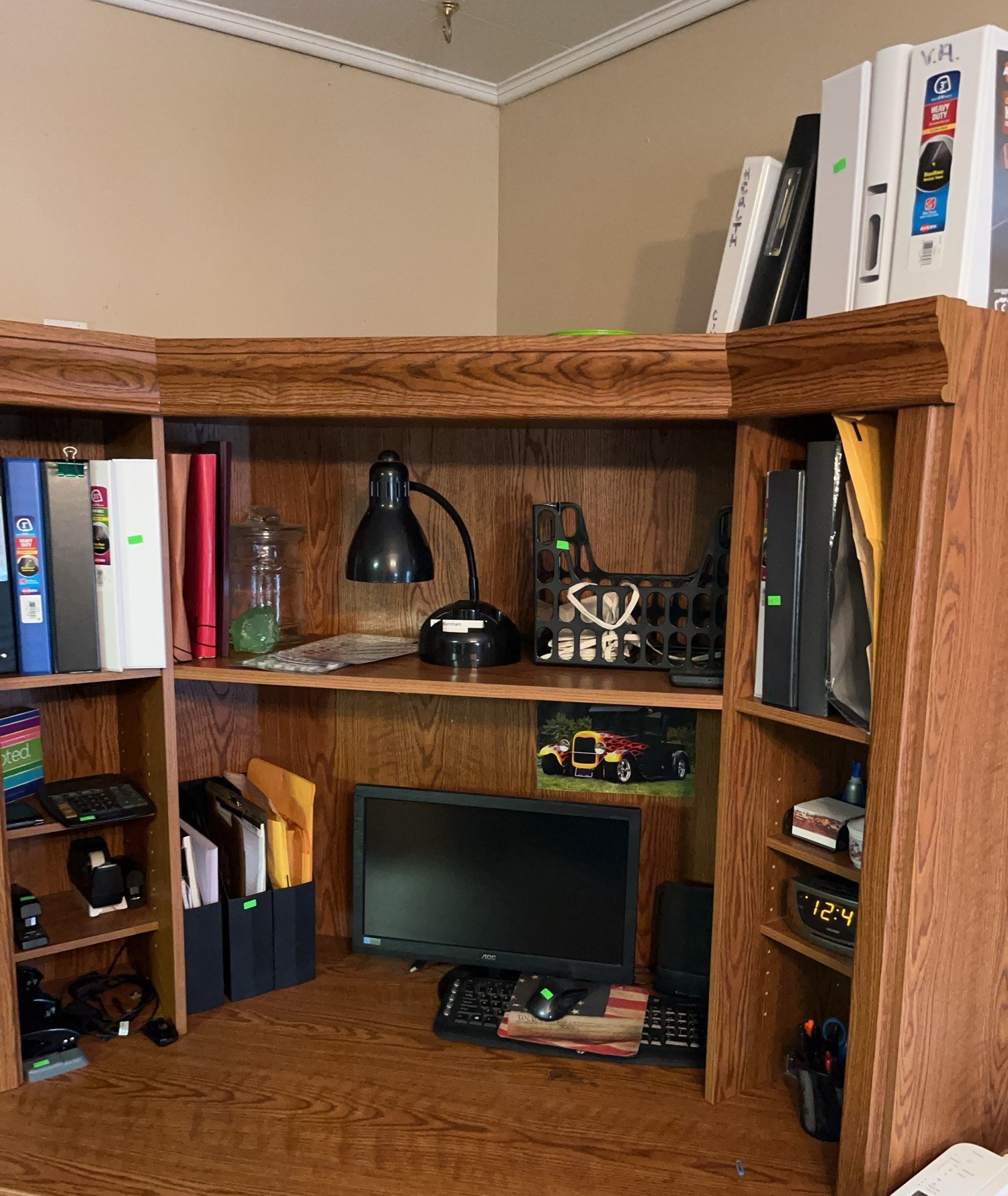 425 Office Supplies Inc. 3 Ring Binders, Desk Lamp, Plastic File Holders and Files, Monitor and Cabinet NOT Included