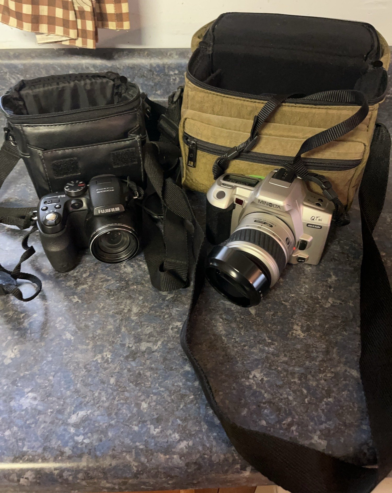 429 2 - 35 MM Cameras with 2 Storage Carry Bags: Fuji and Minnolta