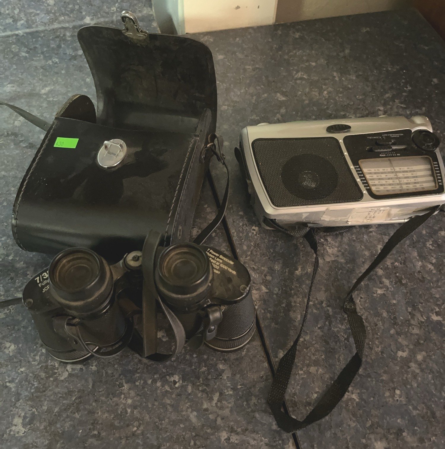 430 JC Penney 7/35 Binoculars and Carry Bag and Handheld Radio