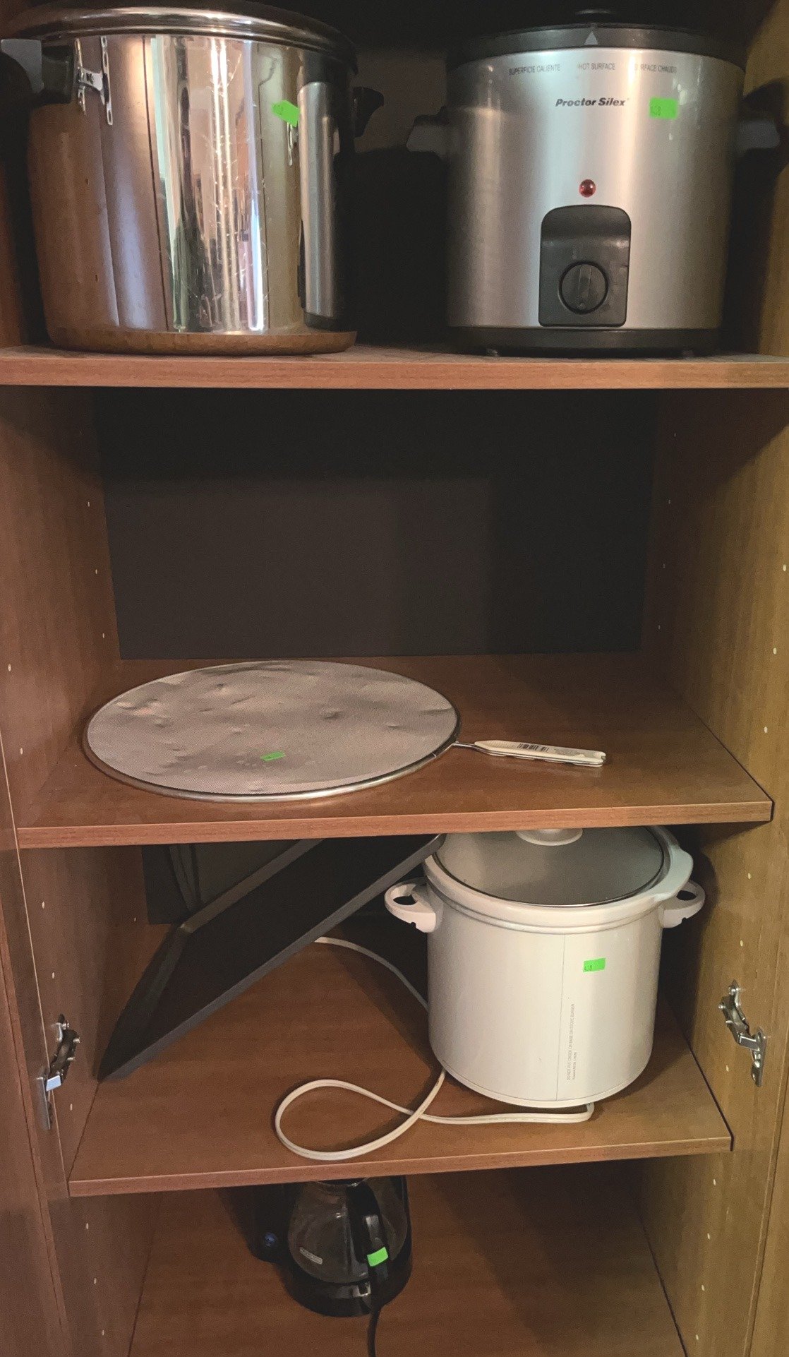438 Proctor Silex Deep Fryer , Black & Decker Coffee Maker, Stockpot and Crock Pot, Shelving NOT Included