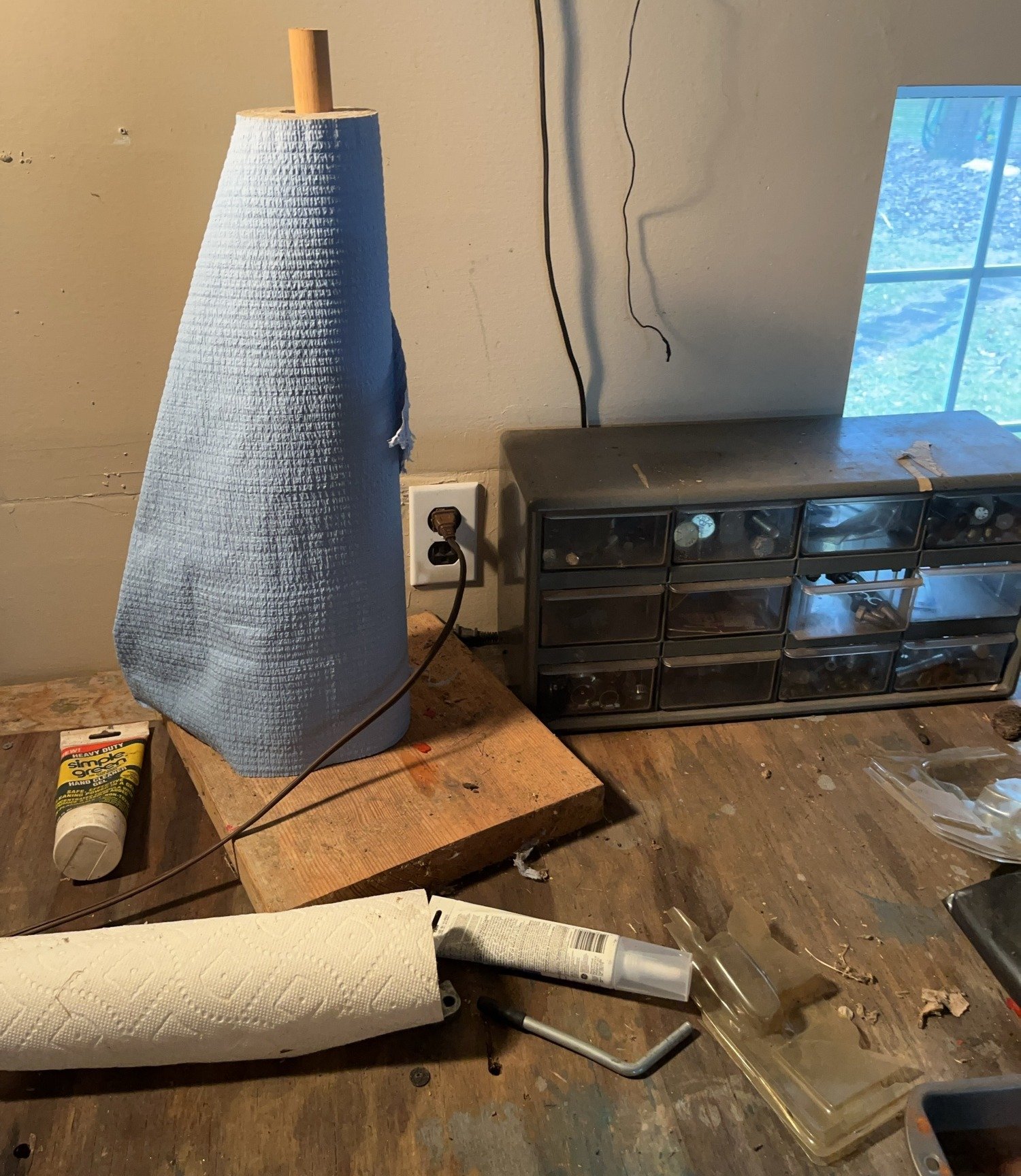 529 12 Drawer Organizer with Hardware, Wood Paper Towel Holder and Light