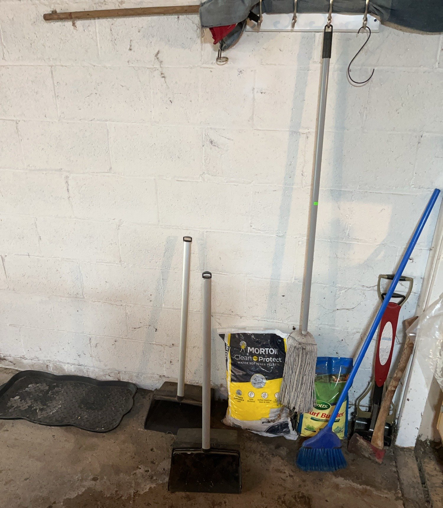 540 Broom, Axe, Morton Softener Salt, Fire Extinguisher and Plastic Boot Tray (Empty)
