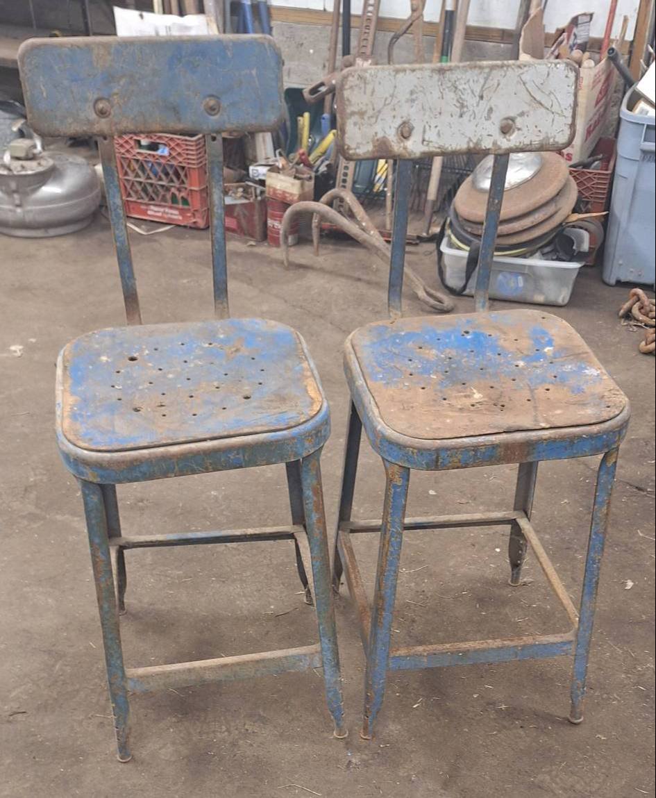 10 2 Industrial Blue Metal Chairs with Perforated Seats, 14×35?