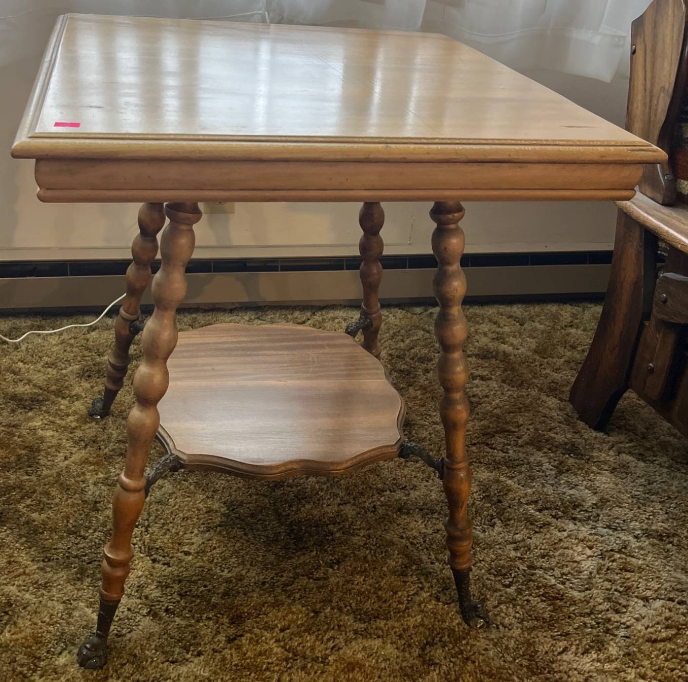 104 Square Lamp Table with Ball-and-Claw Feet and Turned Legs, 24x24x28?