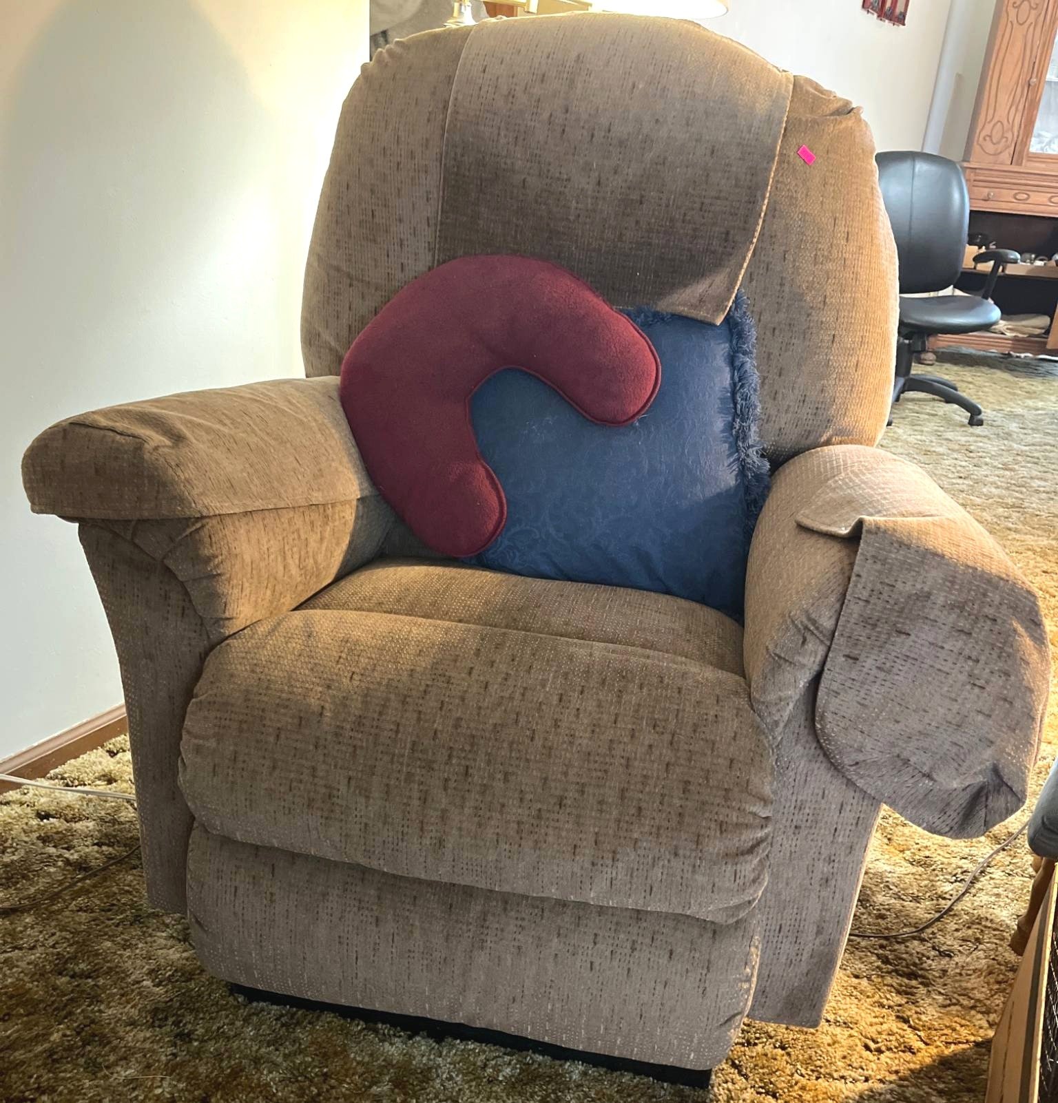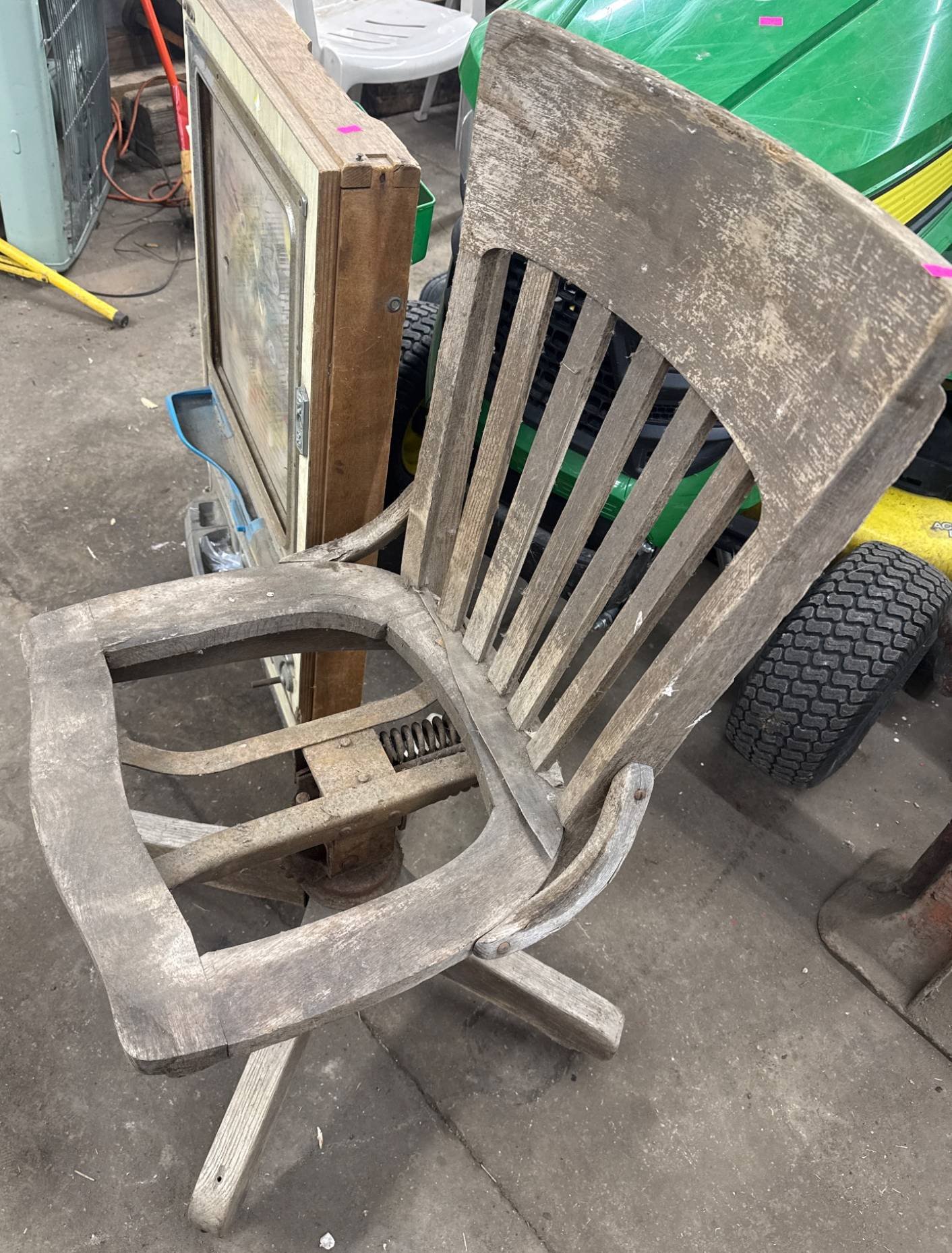 89 Wood Swivel Chair with Spring Mechanism, 37”x20”x22” (needs repair)