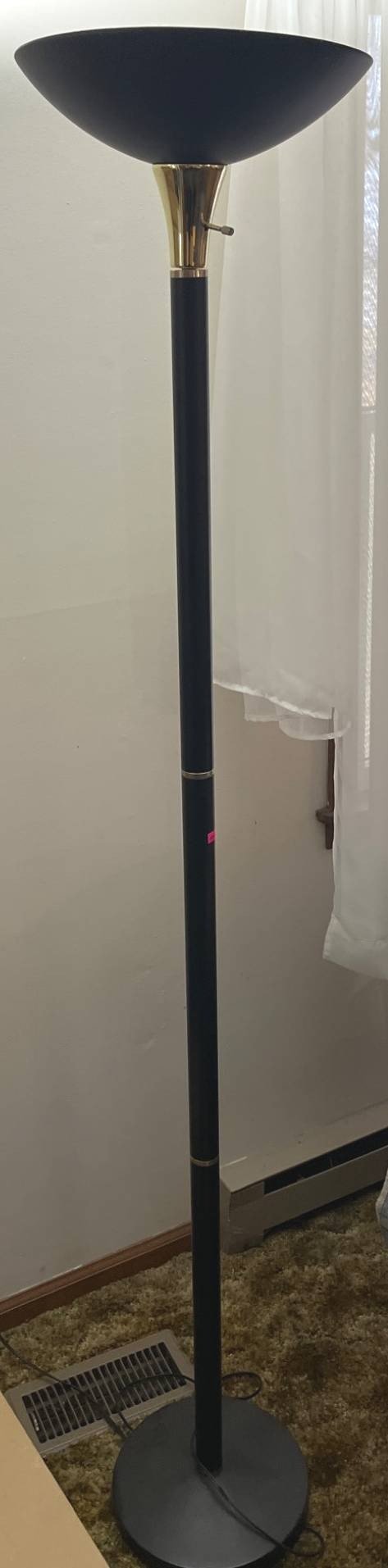 832 Floor Lamp with 3 Glass Shades and Wood Accents, 62?