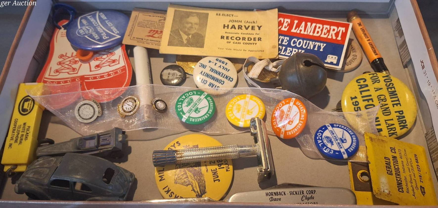 A High Quality Estate featuring: Large Local Advertising Collection: Idaville, Monticello, Star City, Logansport • WWI & WWII Correspondence & Medals • Civil War Veteran Reunion Badges • Quality Antiques & Primitives • 2003 Ford Explorer • John Deere Garden Tractor • Torch Set • Antique Bottles: Apothecary, Brewing, Soda, Milk inc. Logansport, Ft. Wayne, Frankfort, IN • 20+ Antique & Tin-Type Pictures • Ag Advertising: Feed/Seed Sacks, Ledgers, Manuals, John Deere, Case, Deering, Cat • Books inc. Children’s, Readers, Pulaski, Adams, Wells County History & Atlas Books • IND Chauffer’s Pin, License Plates inc. 1913 & Logansport Topper • Railroad Timetables • Coins • Vintage Toys, Marbles, Games, Dolls inc. Vintage Barbies, Porcelain, Kewpies • Project Furniture • Vintage Clothing & Jewelry • Lawn Equipment • Household, Outdoor & More! ?