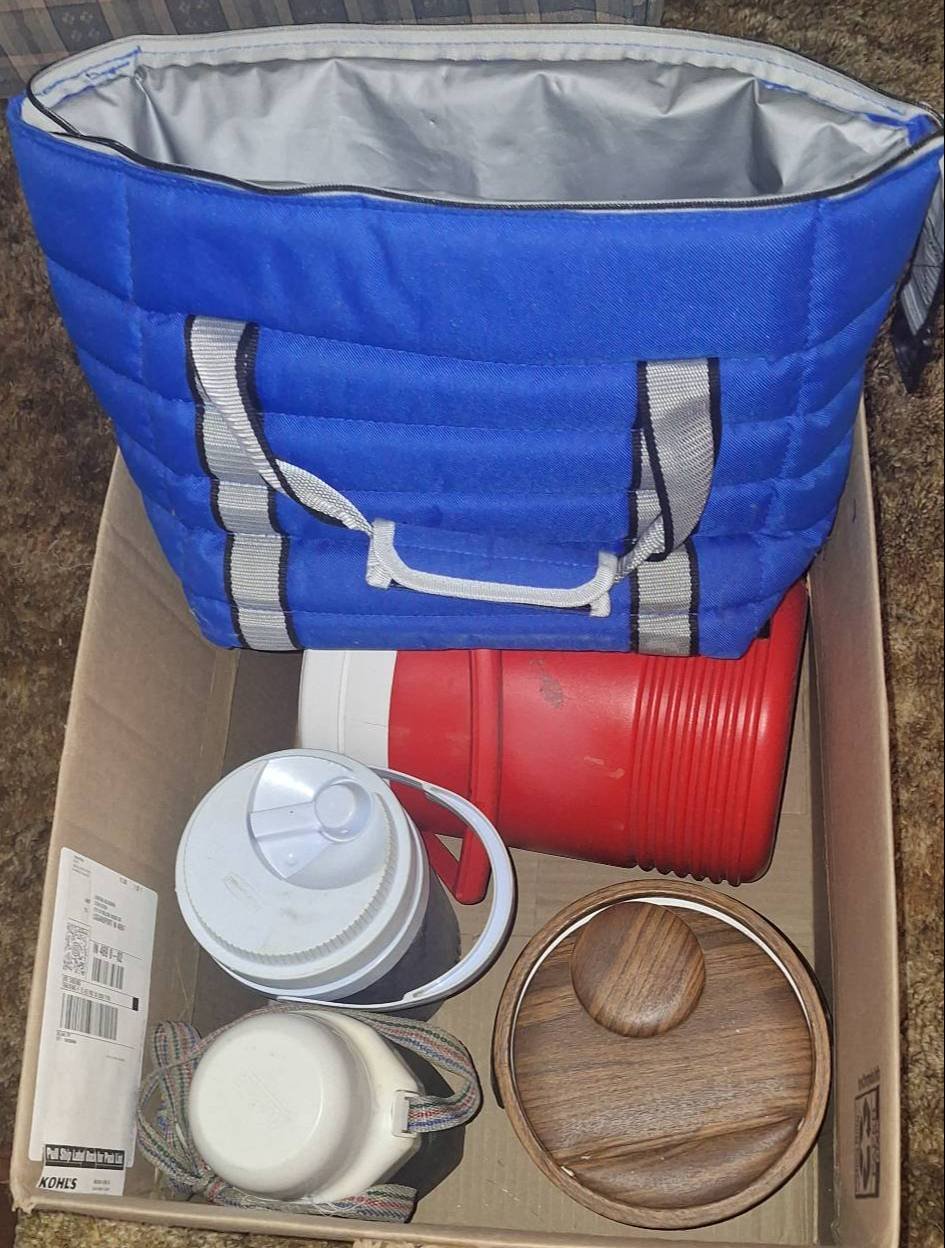 842 Coleman Cooler, Igloo Playmate Cooler, and 5-Liter Beverage Dispenser