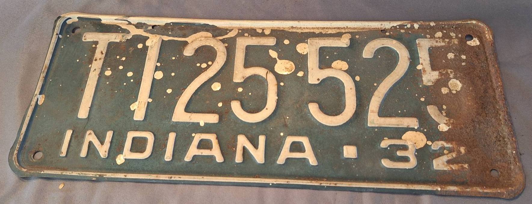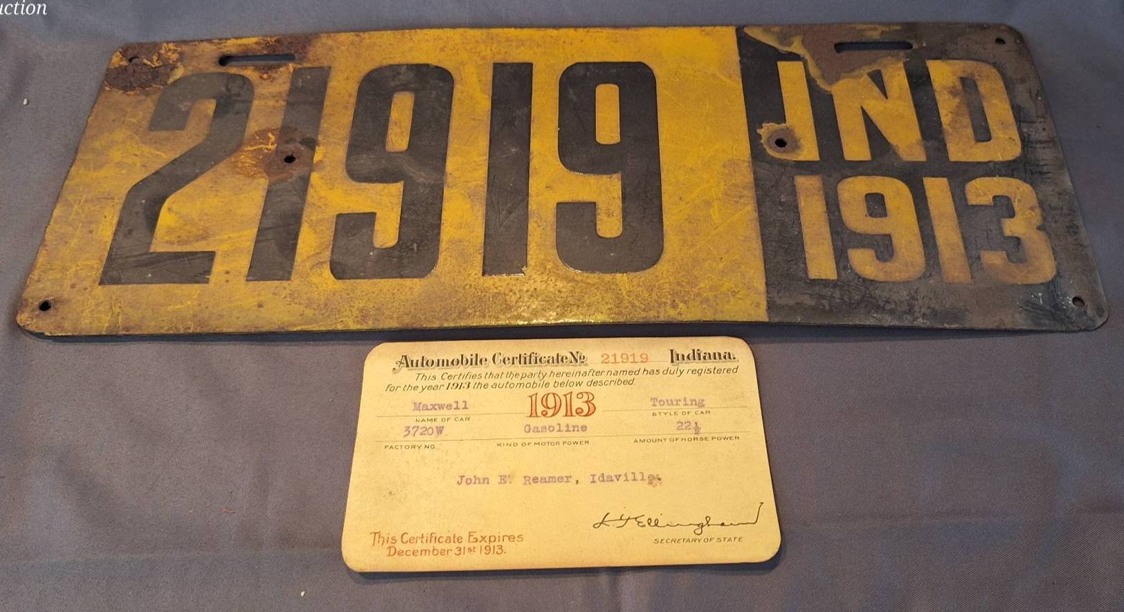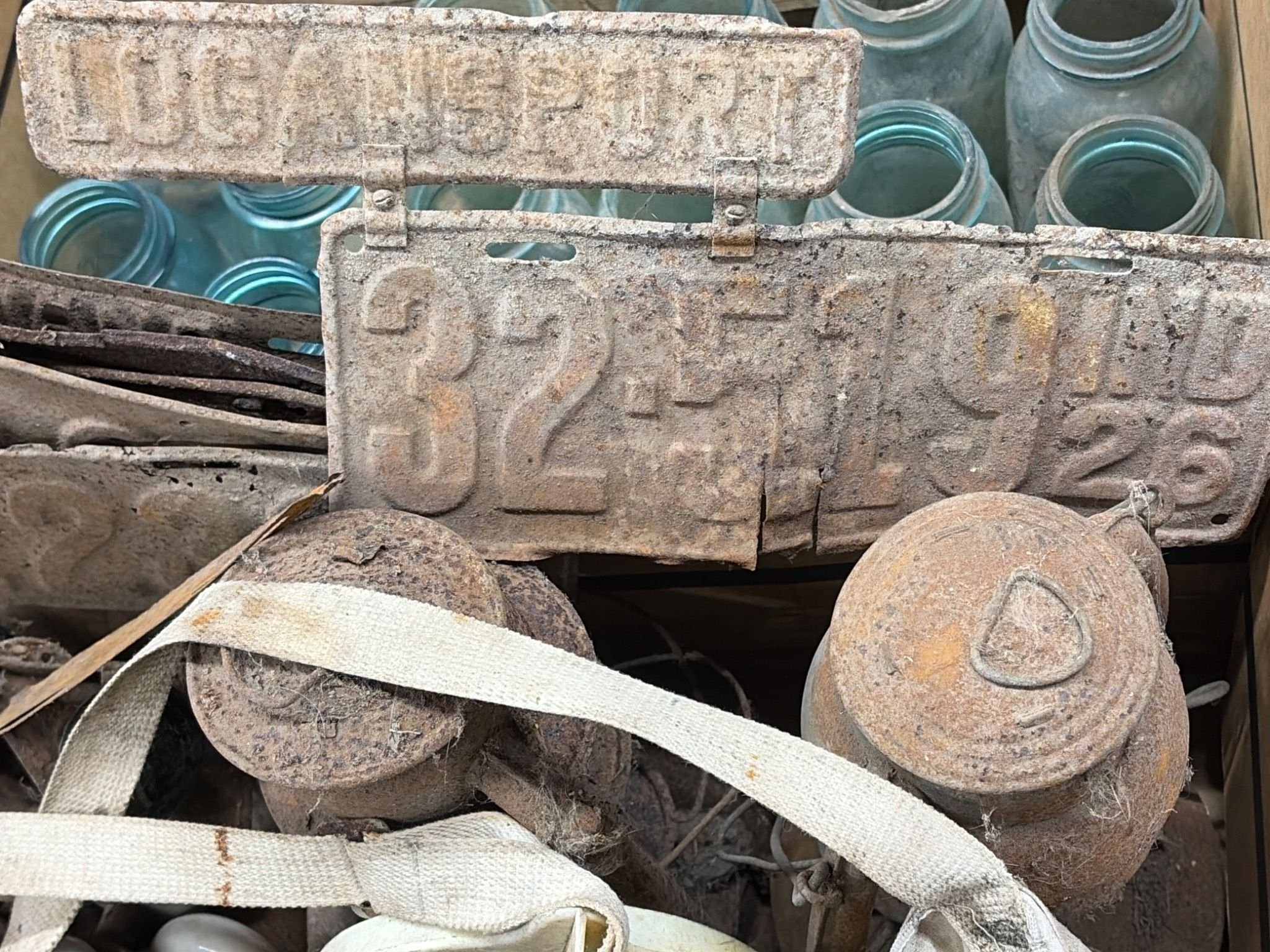 17 1926 IND License plate with Logansport Topper, License Plates, Ant. Door Knobs, Lantern Frames, & Hardware