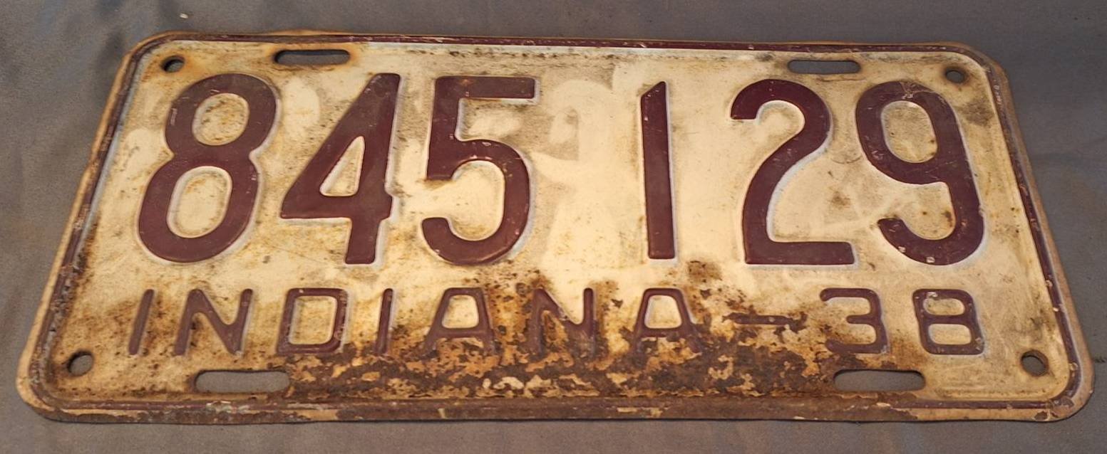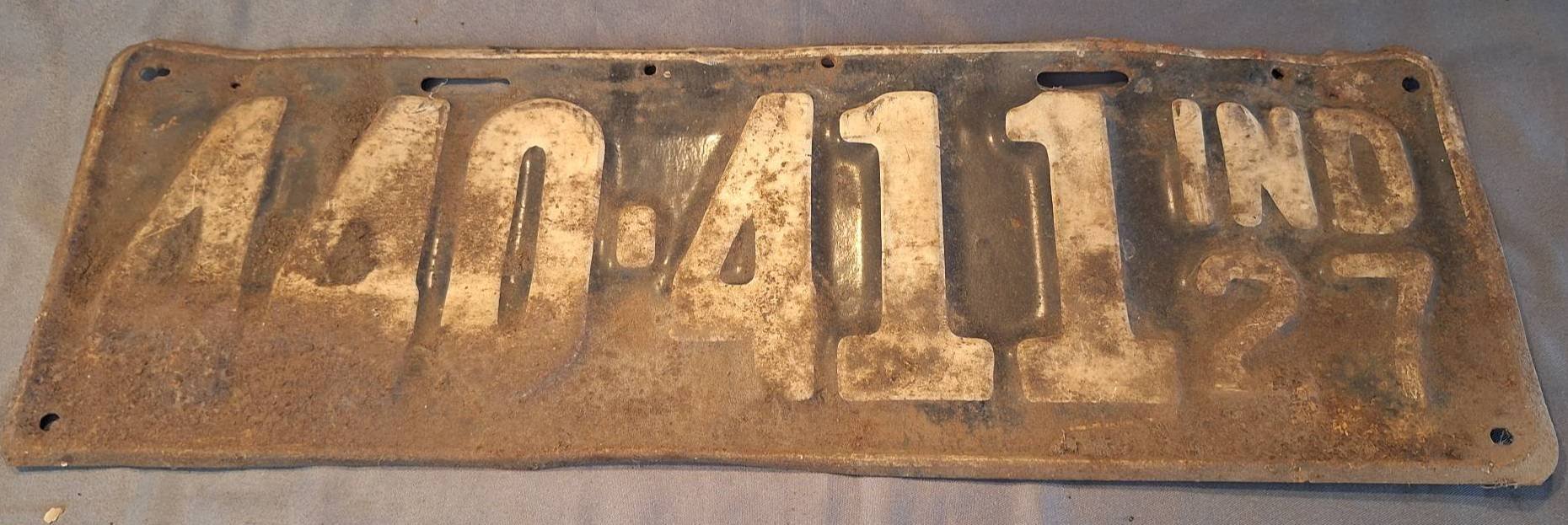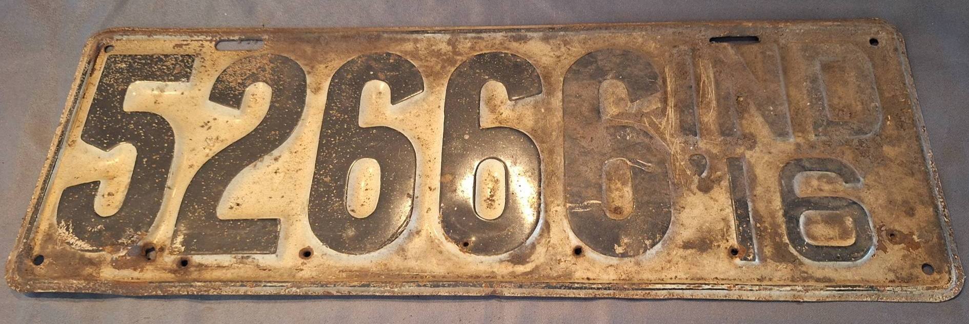 17 1926 IND License plate with Logansport Topper, License Plates, Ant. Door Knobs, Lantern Frames, & Hardware