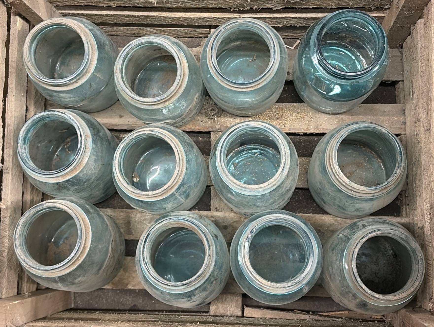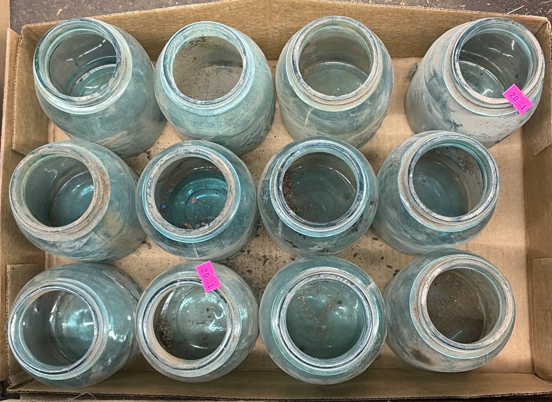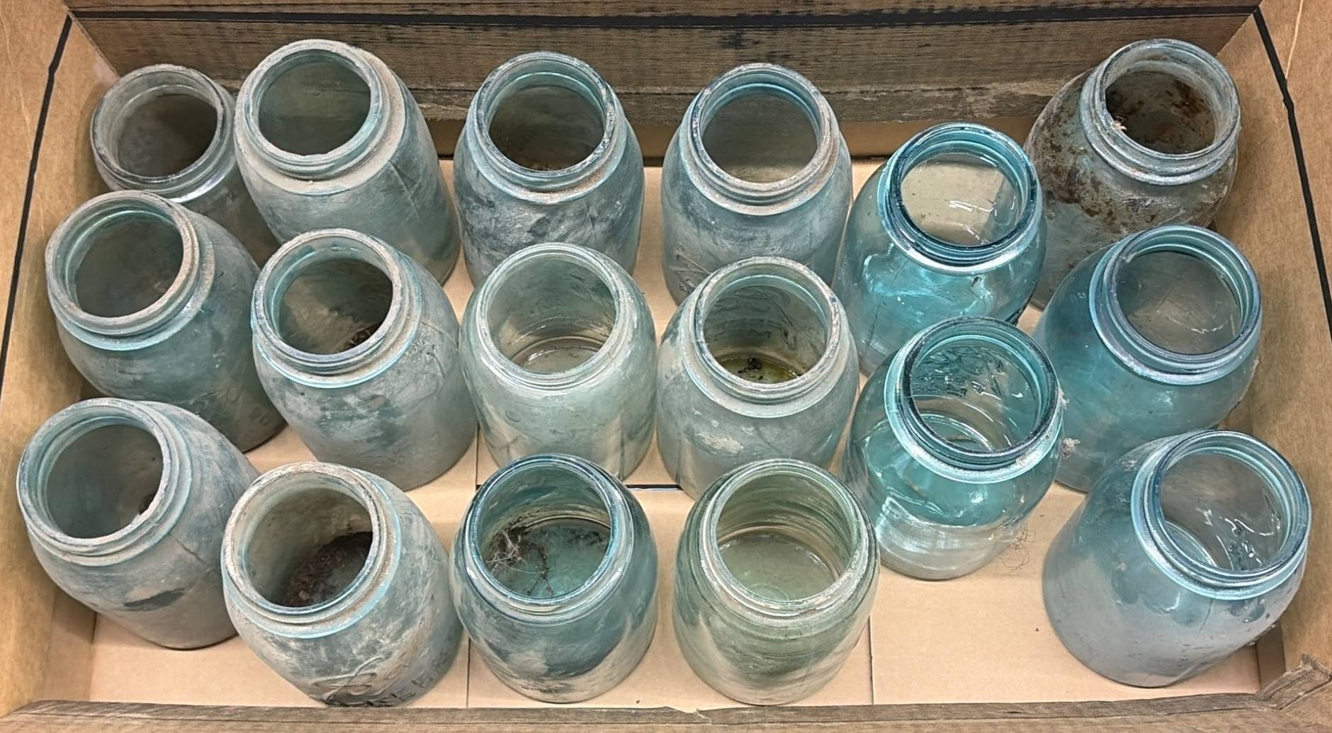 18 17 Ball Glass Jars in Aqua Blue, Quart & Pint Size