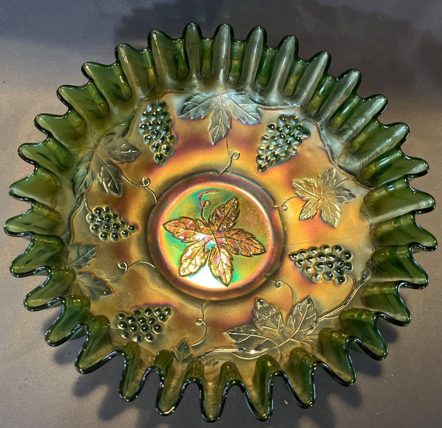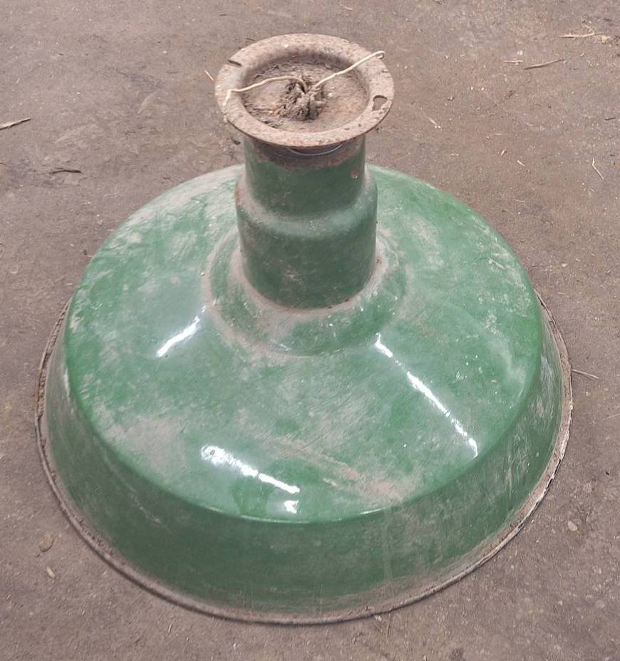 8 Industrial-Style Metal Light Fixture with Green Shade, 16in Diameter