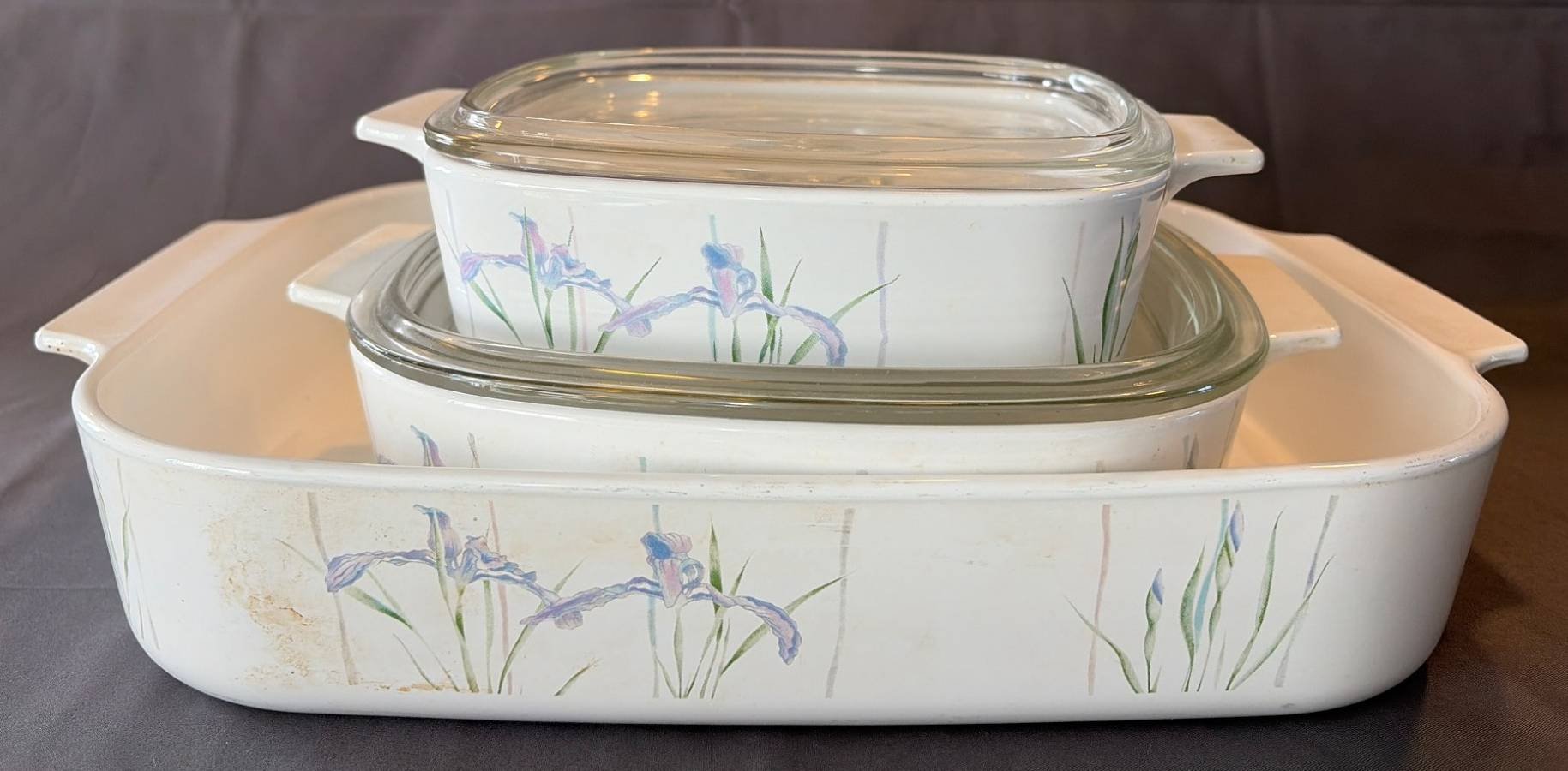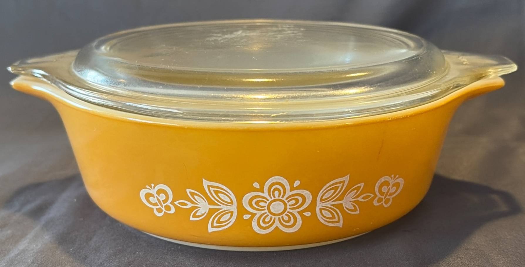 722 Pyrex 1.5 Quart Round Baking Dish with Fruit Design